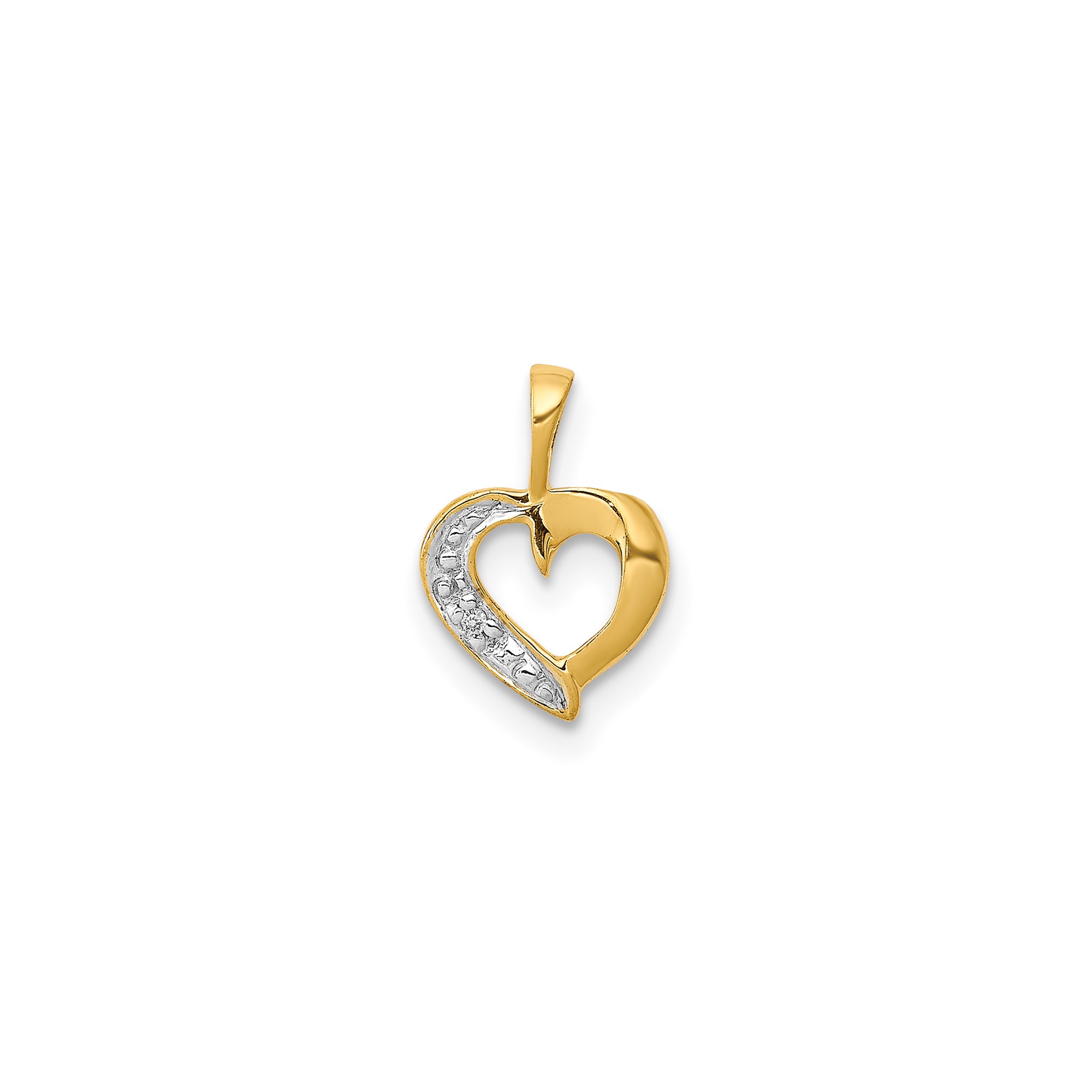 14k Yellow Gold Two-Tone Open Heart Pendant for Women Textured White Accent