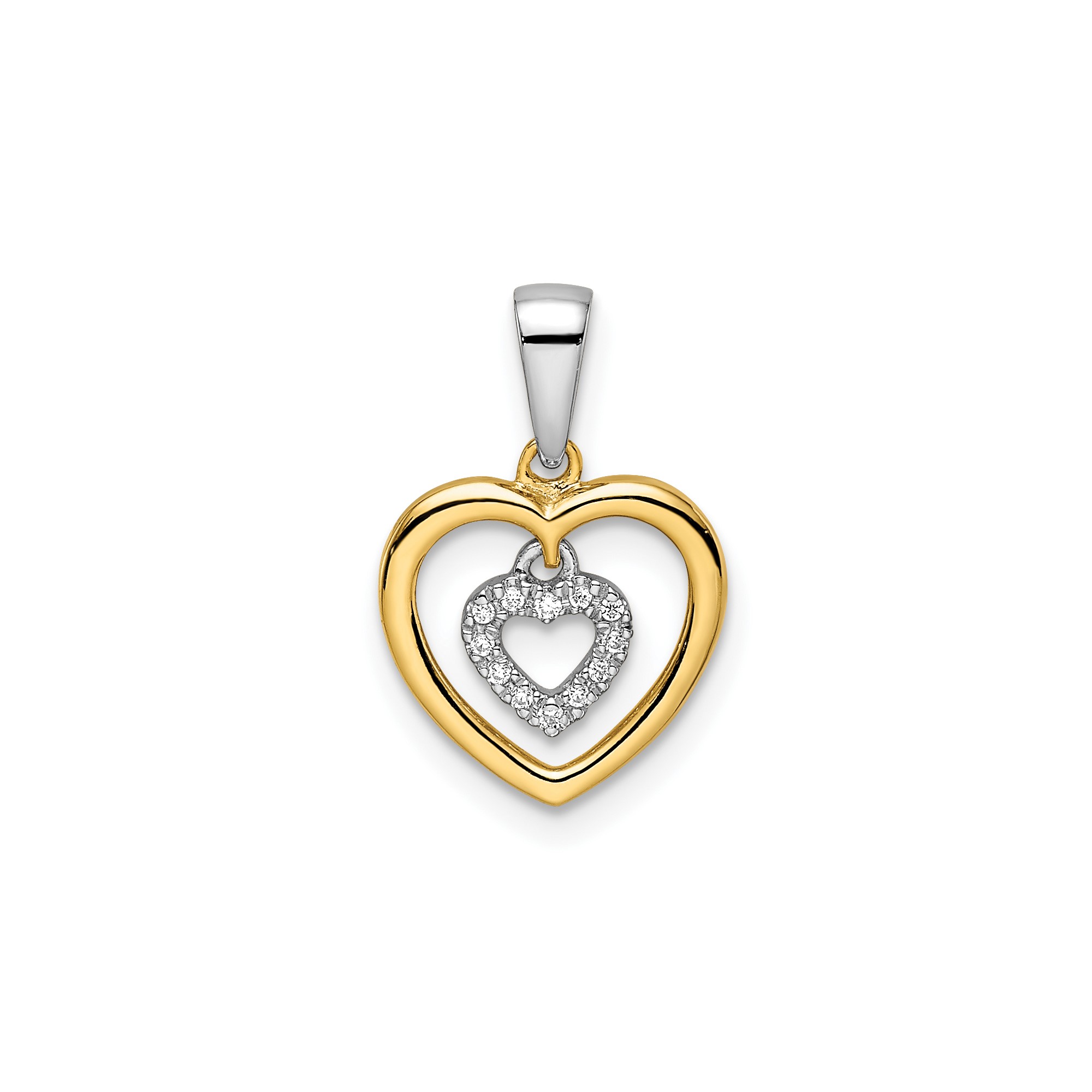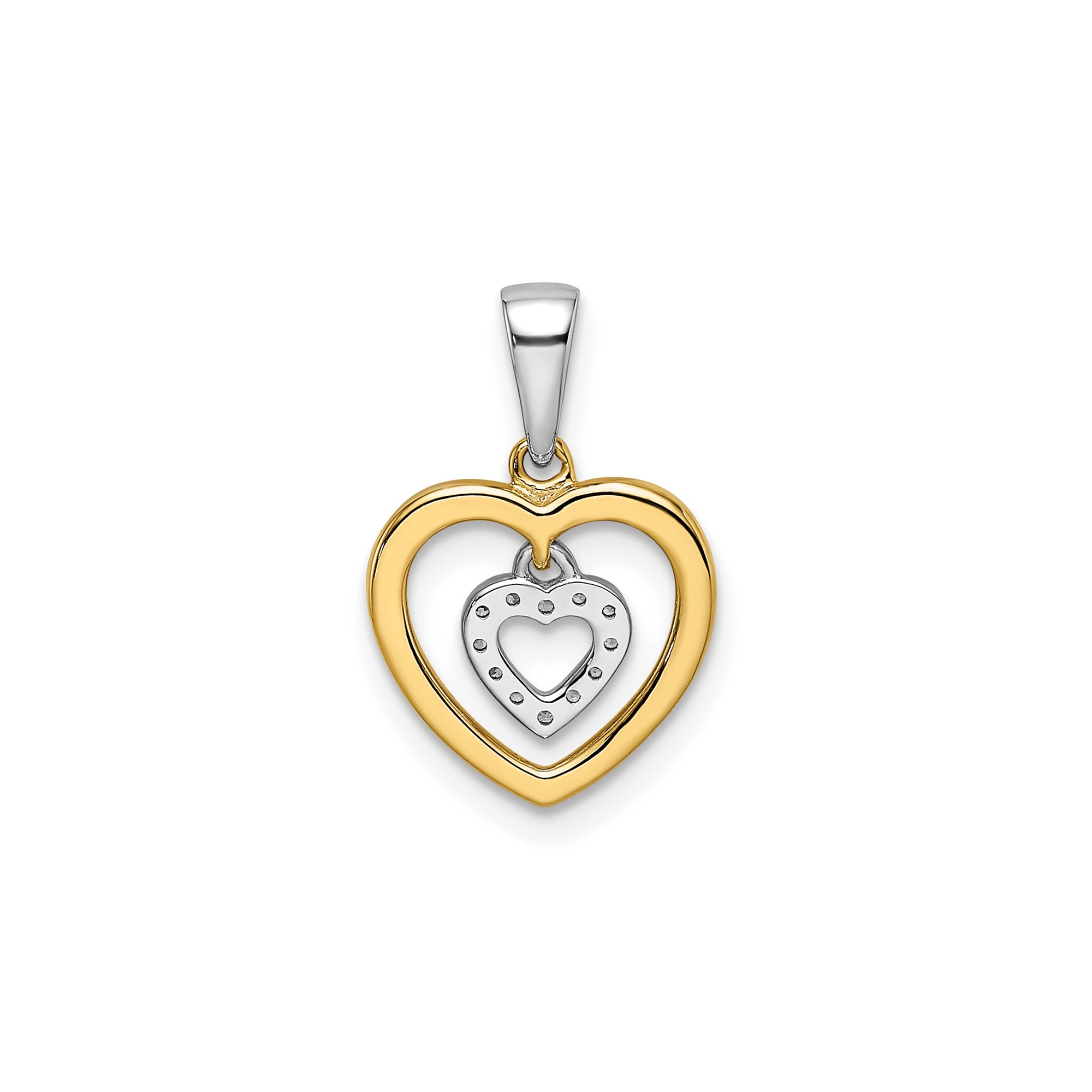 14k Two-Tone Gold Heart Pendant Diamond Accent Double Design for Women Anniversa