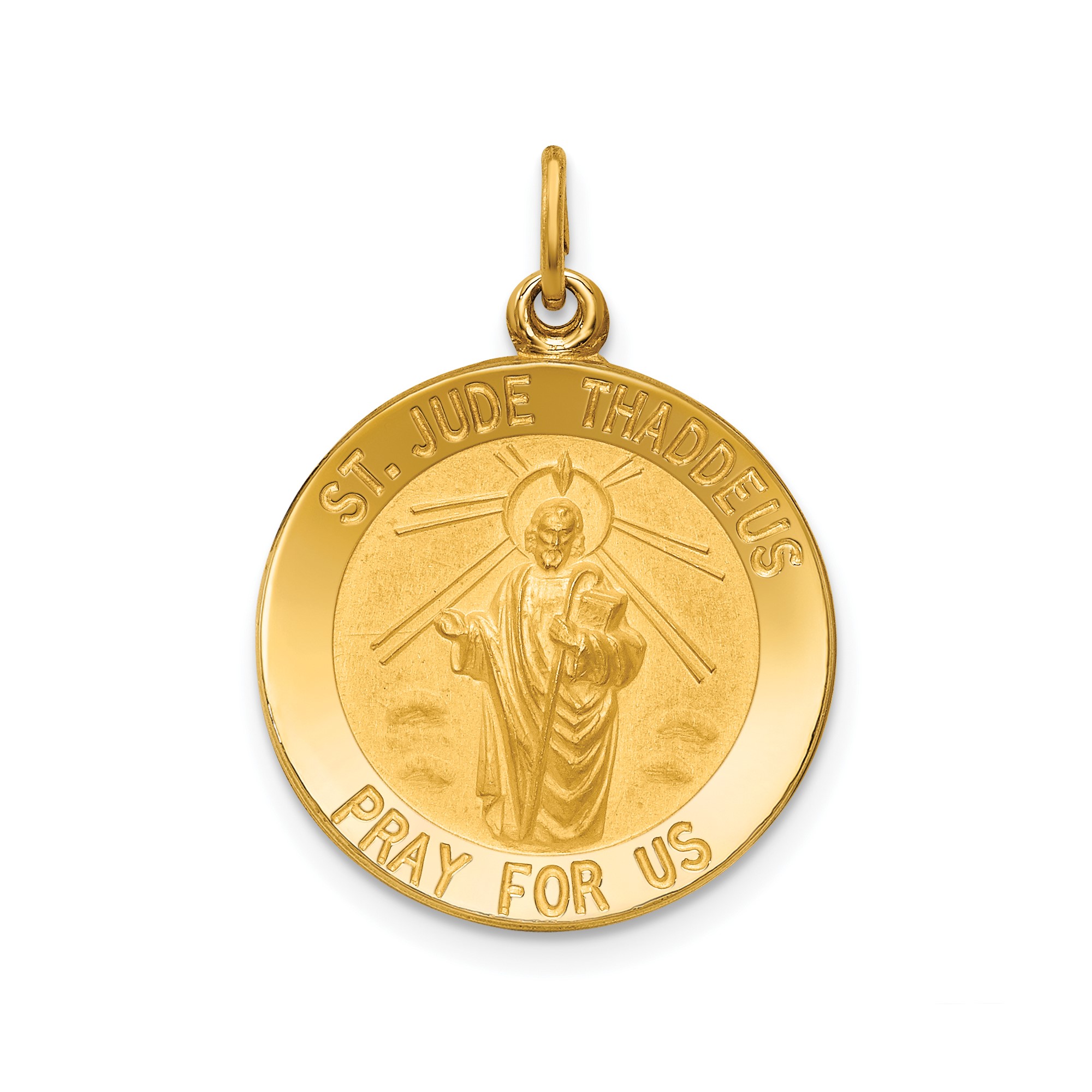14k Yellow Gold Solid St Jude Thaddeus Pendant Engraved Pray for Us 18mm