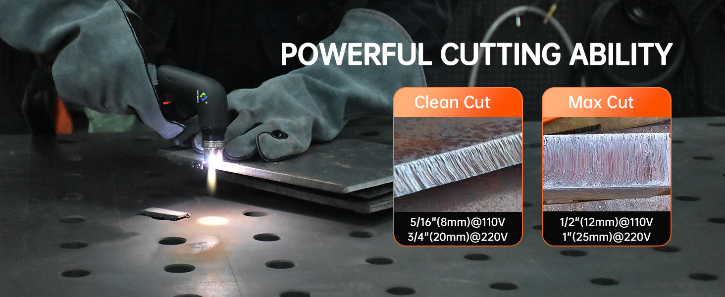 Cutting capacity: DC output current value at 15-65A, quality cutting thickness at 6-8mm, maximum cutting thickness 14-16mm (depending on metal material and cutting speed)
