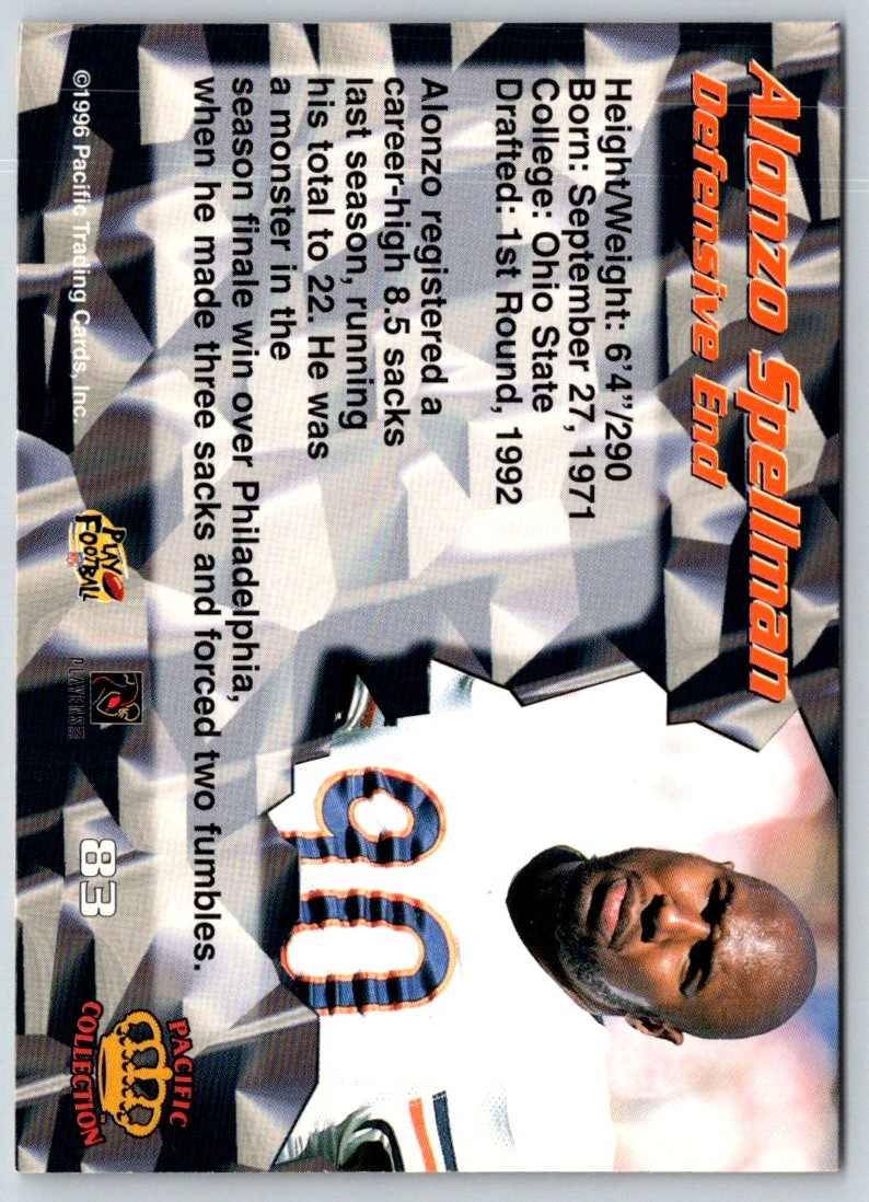 1996 Pacific Alonzo Spellman 83 Chicago Bears Football Card