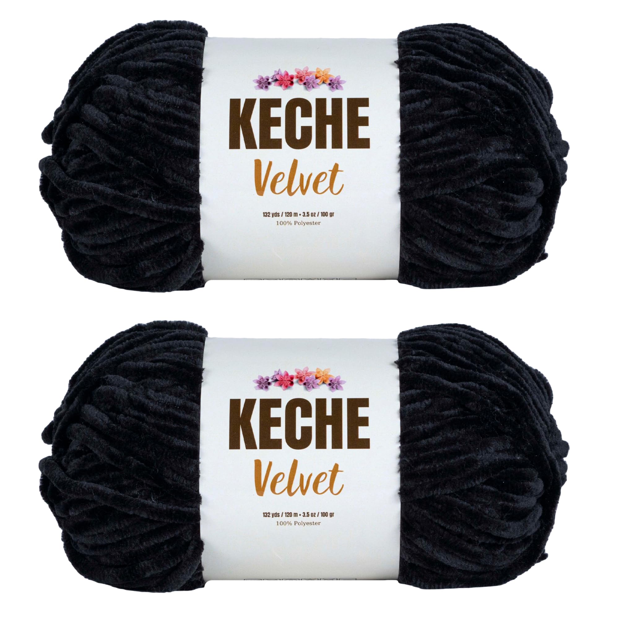 Keche Velvet Yarn for Crocheting, Soft Chenille Bulky Baby Blanket Amigurumi Yarn 2x100 gr (2x132 yds) (2 Skeins) (Black)