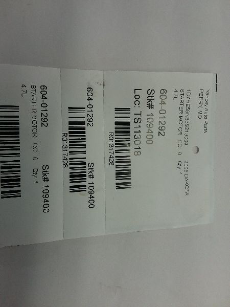 This listing is for a USED 03 04 05 DODGE DODGE 1500 PICKUP Starter Motor 3.7L AT 56029113AA . This part was removed from a 2005 DAKOTA stock number 109400 and the mileage was 135000 miles. Part Condition Notes: 4.7L 56029113AA This part will fit these makes and models with these options: DAKOTA 04-05 3.7L, AT