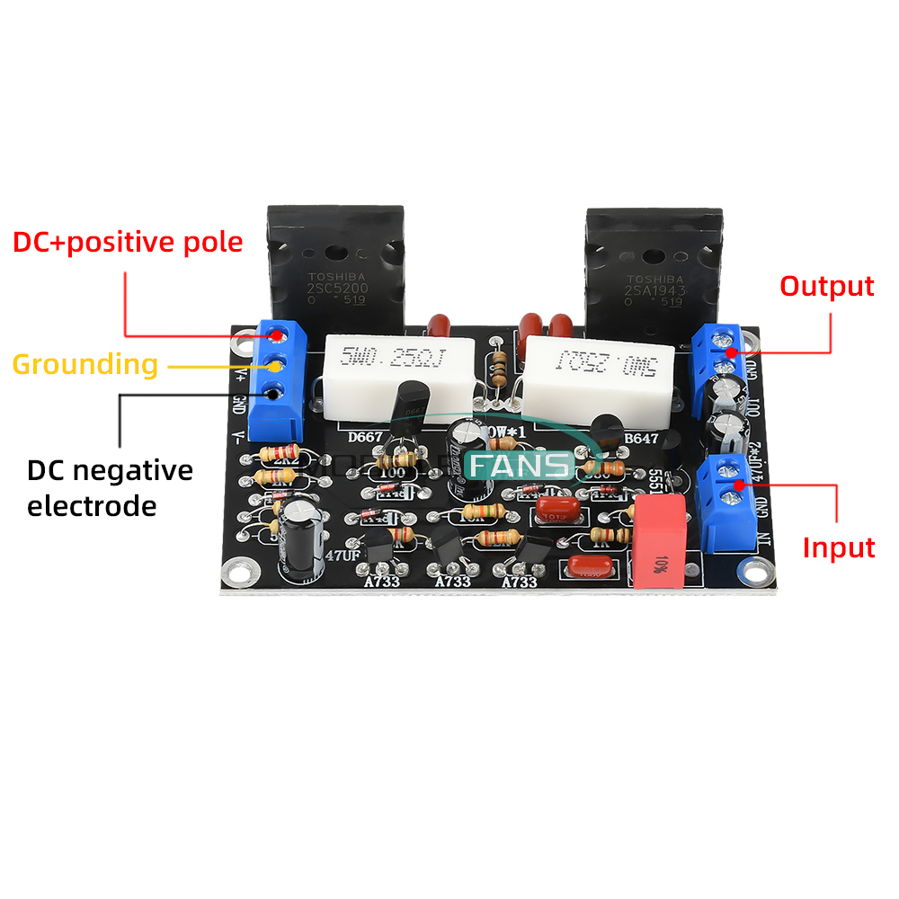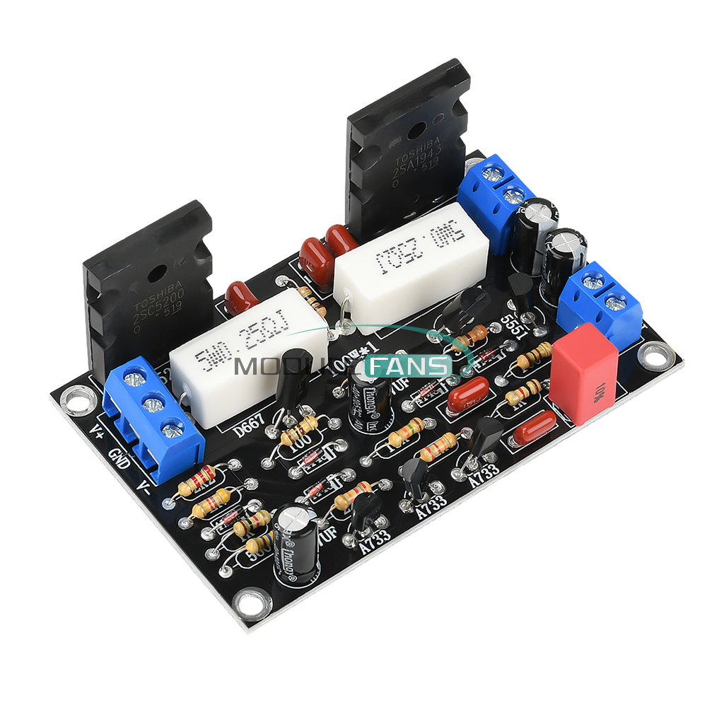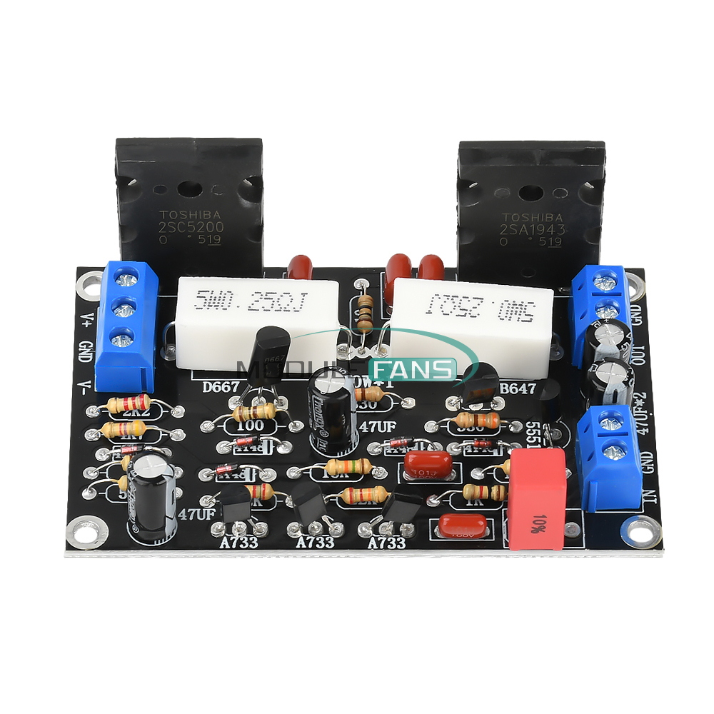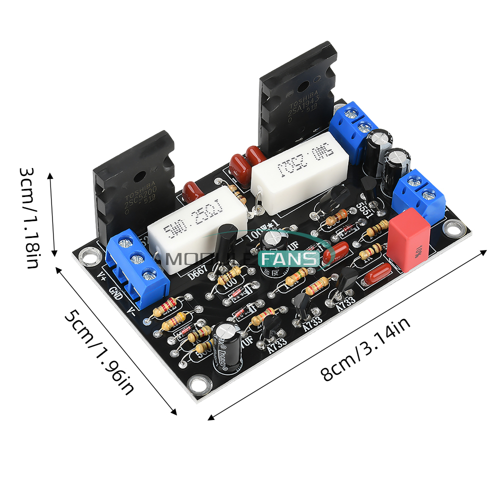 2PCS 2SC5200+2SA1943 Mono 100W Amplifiers HIFI Audio Amplifier Board DC-10V-45V