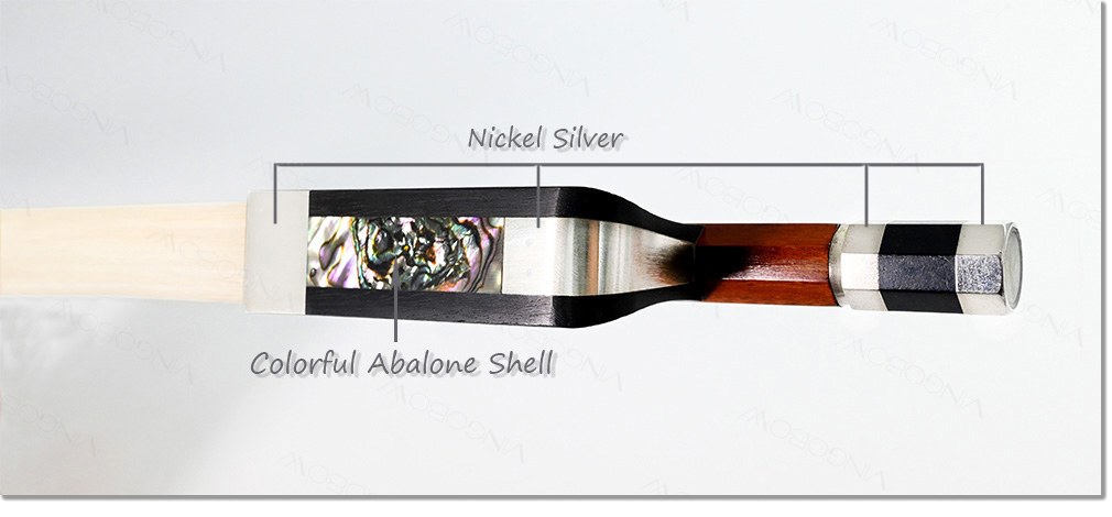 The black horsehair bass bow can provide you loud and wild sound.It is round stick which is made of beautiful brown pernambuco.It uses premium quality natural horsehair, great resilience, easier to rosin.Colorful mother-of-pearl Slide.Genuine leather grip, elegant nickel silver thread winding.Very charming looking.This is a really fine French bass bow with a great balance.It produces a rich warm and open sound.