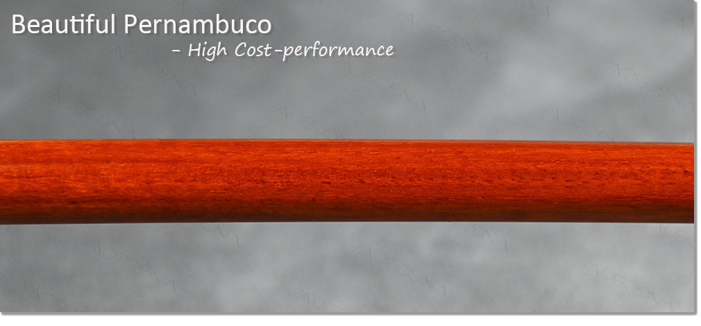 ◆ PERNAMBUCO - The bow is beautiful Pernambuco stick, brown color, air dried more than fifteen years. Round stick shape.