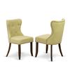 EAST WEST FURNITURE 6-PIECE KITCHEN ROOM TABLE SET- 4 FABULOUS MID CENTURY DINING CHAIRS, 1 WOODEN DINING TABLE AND KITCHEN BENCH The 6-piece dining room set consists of 4 dining padded chairs, 1 dining table and a dining room bench. These dining padded chairs have a Linen Fabric seat, Button Tufted Chair Back, and the dining table is consists of rectangular top and Wooden Cross Legs. The dining padded chairs seat and the chair back is produced from Linen Fabric in a Limelight color dining padded chairs hardwood frame and the Linen Fabric seat is simple to clean. You can clean dust quite simply and often save time by using a damp cloth. These parson chairs and the dining table is the perfect choice for your dining room or kitchen. The simple structure of the parson dining chairs and the dining room table as well as screws of the same size that allow simple and fast set up. FEATURES: Dining Table Set Material: Asian Hardwood Seating Material: Linen Fabric Wooden Dining Table and Dining Table Bench Top Color: Linen White dining table and Small Bench Legs Color: Distressed Jacobean Parson Dining Room Chairs Legs Color: Distressed Jacobean Parson Dining Room Chairs Fabric Color: Limelight Dining Table Dimensions: Length 72; Width 40; Height 30. Mid Century Dining Chairs Dimensions: Length 20; Width 22; Height 36. Wood Bench Dimensions: Length 72; Width 15; Height 18. Included in the Package: One Wonderful Breakfast Table, a Dining Bench and 4 Lovely Parson Dining Room Chairs.