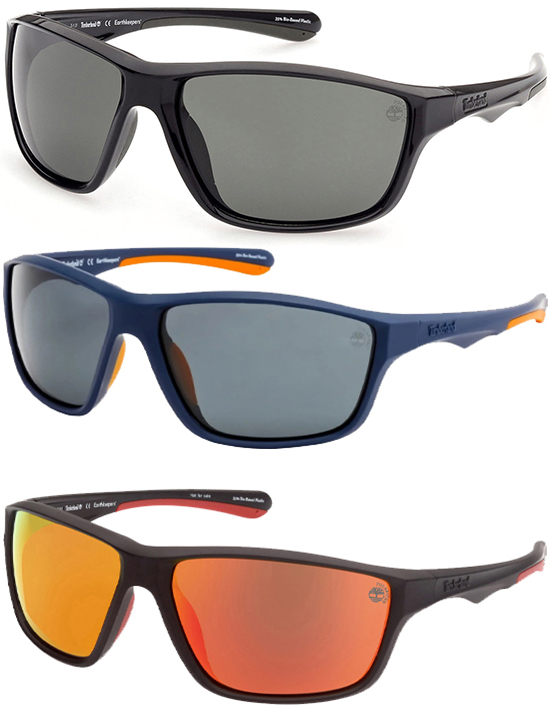 The TB9246 from Timberland features a sporty wrap design made from eco-conscious 35% bio-based injected plastic. Rubberized nose pads and inner temple tips ensure non-slip comfort. Fitted with polarized lenses that cut glare and provide 100% UV protection from the sun's rays. Branding at temples with tree logo on upper left lens.