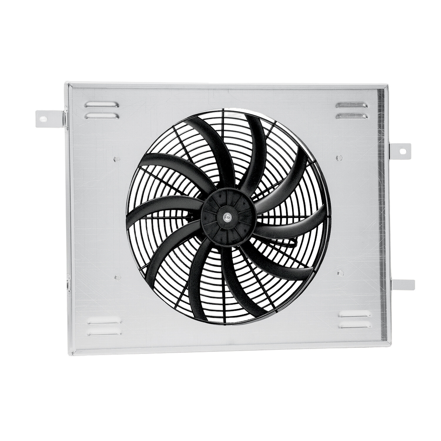 Configuration: Material: AA5052 Aluminum Fan Specification: Diameter : 16'' (Blade to Blade) Voltage: DC 12 Volts Wattage: 120W Number of Blades: 10 S-Type blades Maximum Fan CFM(Cubic Feet per Minute): 3,000 cfm Maximum Fan RPM(Revolution(s) Per Minute): 2000±10% Amp Draw: 10amp " S-Type Blade pull push design, to make air flow more efficient and bring more cooling Effect Powerful 120 watt motor will keep your engine cool. AA5052 Aluminum Shroud+Fan: Our custom-made AA5052 aluminum fan shrouds are manufactured to fit our ALLOYWORKS and ASI