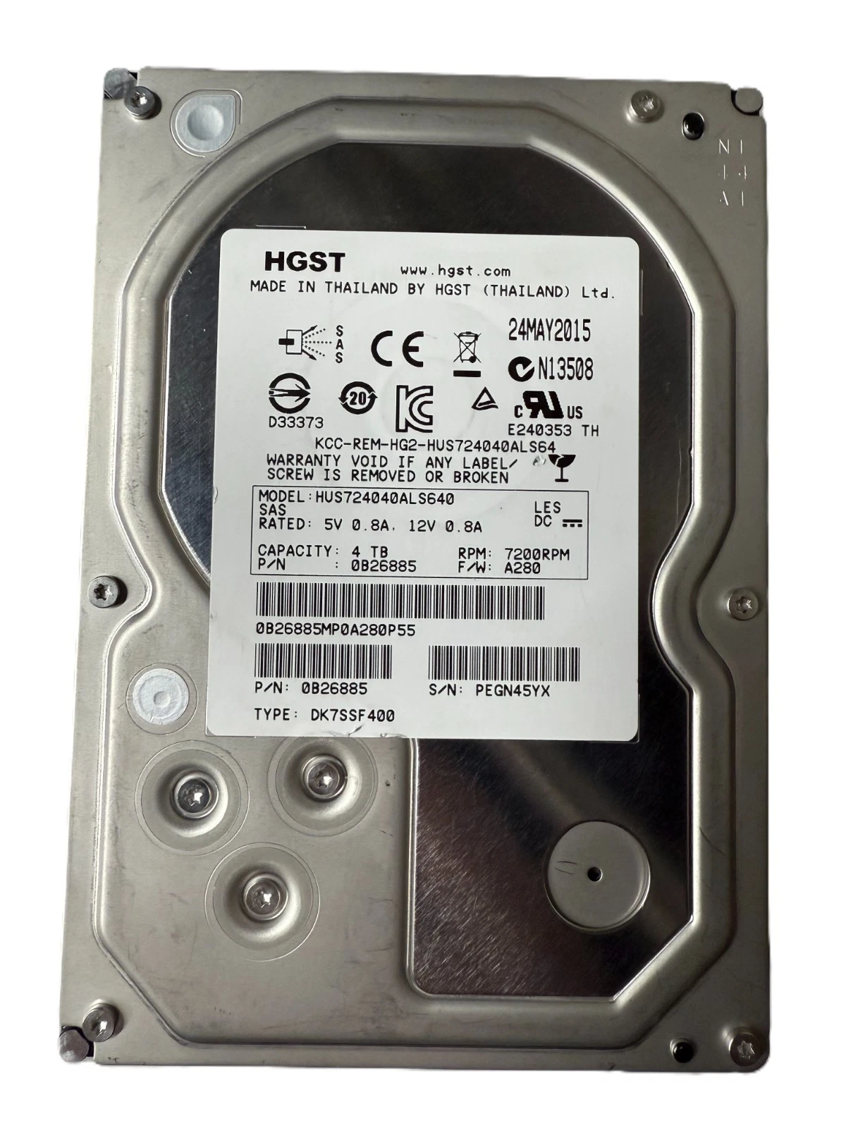 The HUS724040ALS640 is a HGST Ultrastar 7K4000 enterprise-grade internal hard drive with a 4TB capacity. It features a 7200 RPM rotational speed, a SAS 6Gb/s interface, a 3.5-inch form factor, and is designed for high-reliability applications, such as in servers and RAID configurations.