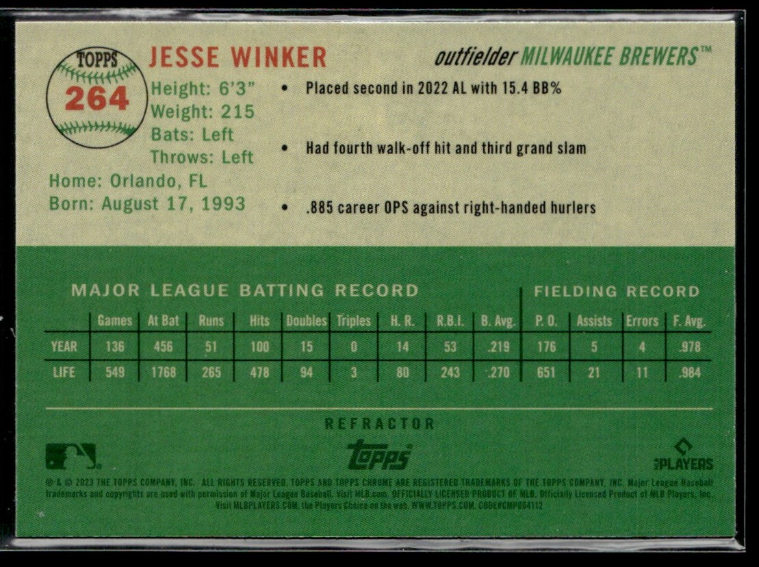 2023 Topps Chrome Platinum Refractor Jesse Winker RC #264 TW1
