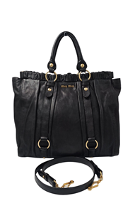 Authentic miu miu Vitello Lux Gathered Tote Shoulder Bag / Crossbody Bag done in the Finest Dark Brown Nappa Leather. The Leather has a Supple and Luxurious Soft Hand and will come with its Shoulder Strap. You'll receive the Bag Only. There is no dust bag.