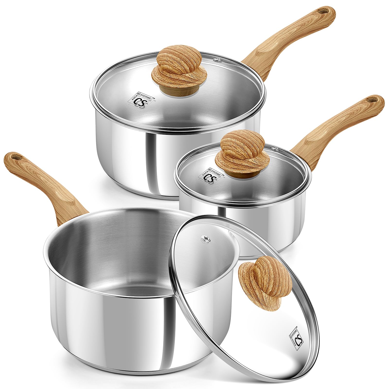 Effortless Cleaning & Maintenance – The mirror-polished surface of each sauce pan resists stains and discoloration. Tempered glass lids allow for easy monitoring, and all pots in the set are dishwasher safe for quick cleanup after cooking.