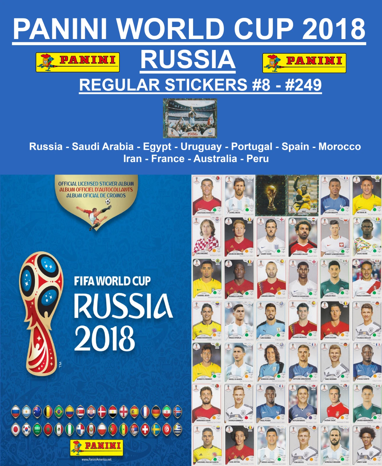 PANINI FIFA WORLD CUP RUSSIA 2018 -REGULAR STICKERS #08-#249