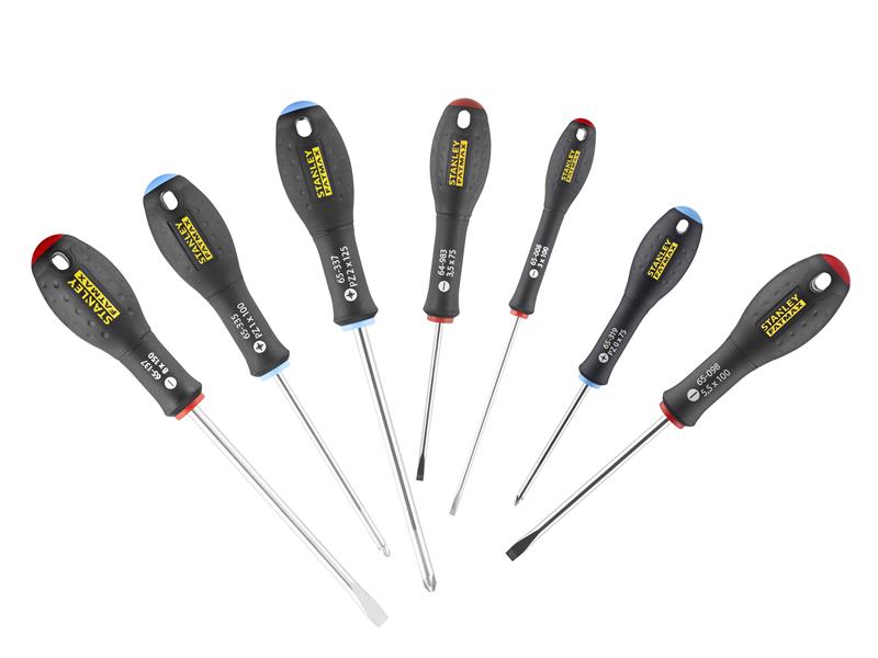 The Stanley STA 0-65-425 7 piece FatMax® Screwdriver Set Parallel / Flared / Pozidriv 7 piece set includes: