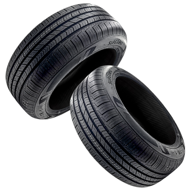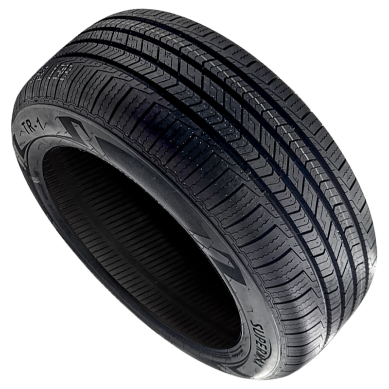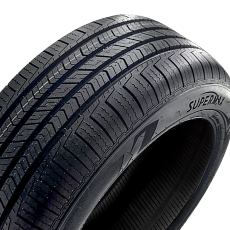 The Supermax TR-1 tire is a versatile economy all-season performance tire that has a very good 500AA UTQG, which means good mileage, and traction at a good price. The tire has a tread compound, siped tread pattern and open grooves for grip on wet roads, dry roads and light snow covered roads. Featuring a wide central rib with numerous zig-zag slots crossing it diagonally that offers greater stability and increases rigidity for improved acceleration and braking characteristics with reduced tire noise. Wide circumferential grooves expel water from beneath the tire's contact patch. Reinforced shoulder blocks prevent lateral slip when cornering at high speed and increase snow performance. It is also backed by a 50,000 mile treadlife warranty.