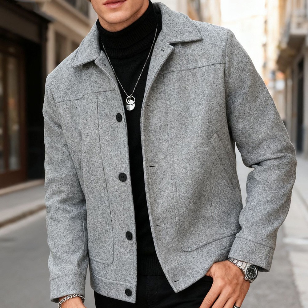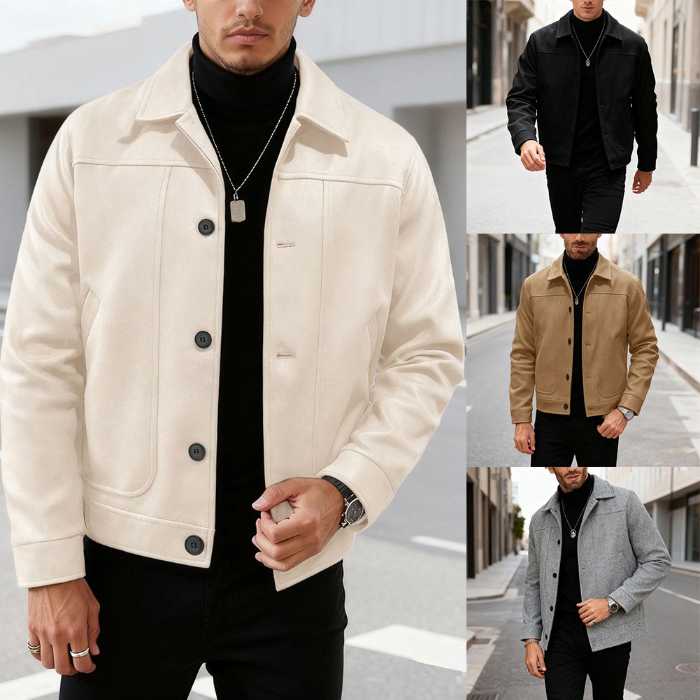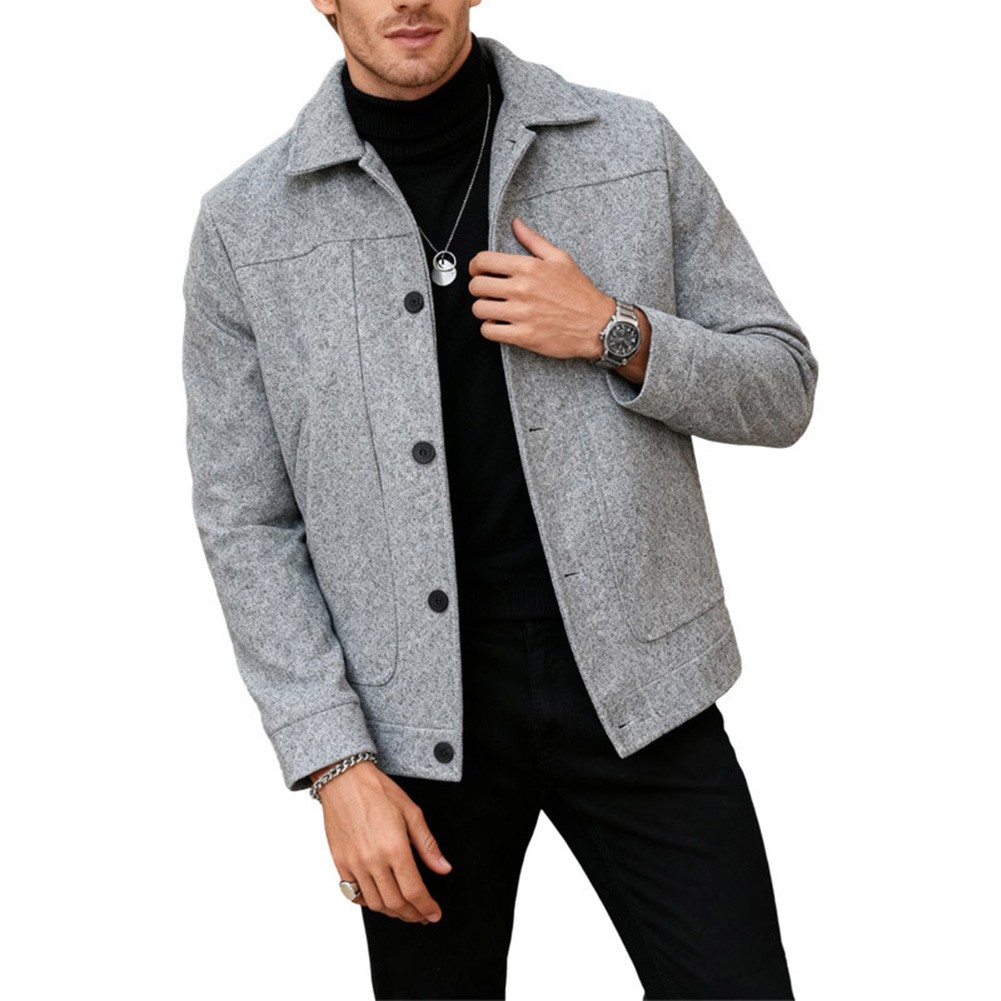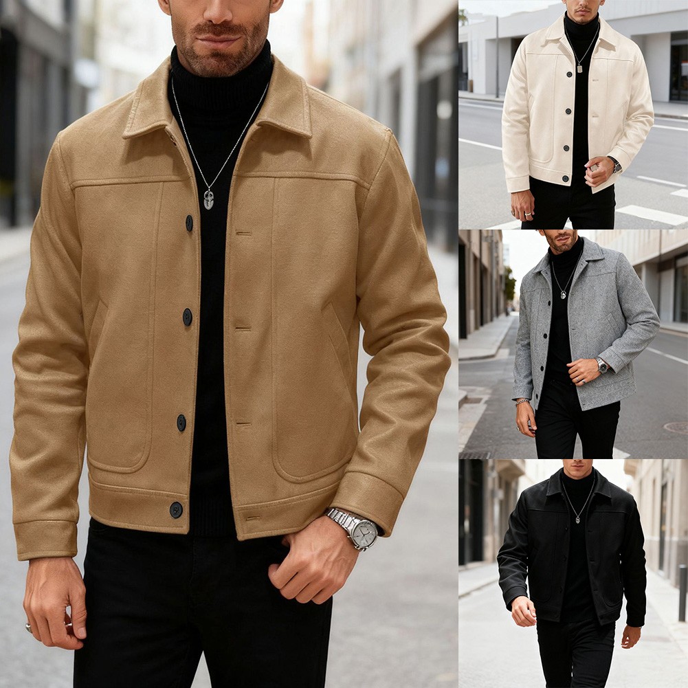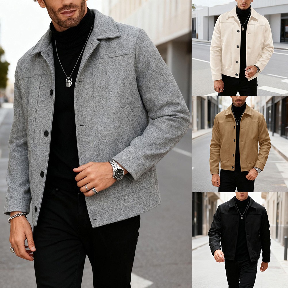 * Item Features:Men, Lapel, Business, Woolen, Jacket, Long Sleeve, Single-breasted, Loose, Outerwear
