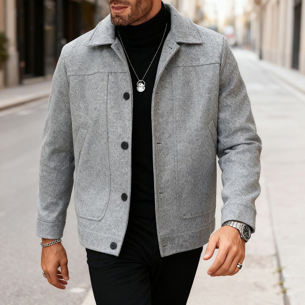 Loose Fit Men Woolen Jacket Lapel Single Breasted Long Sleeve Business Coat