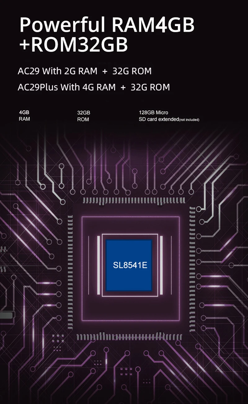 2. AC29Plus-->Android 8.1 Standard function, 4G RAM+32G ROM.