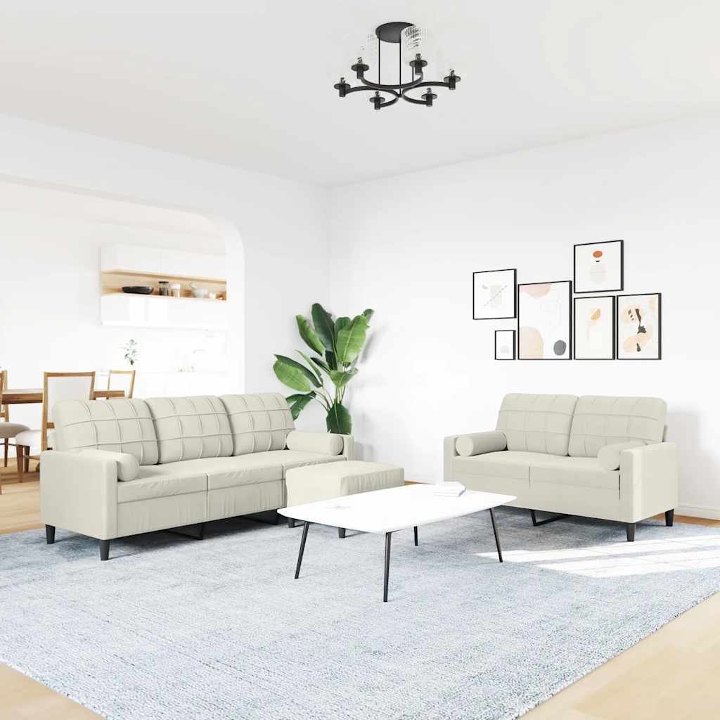 Set di Divani 2 pz con Cuscini e Rinforzi Crema in Velluto vidaXL