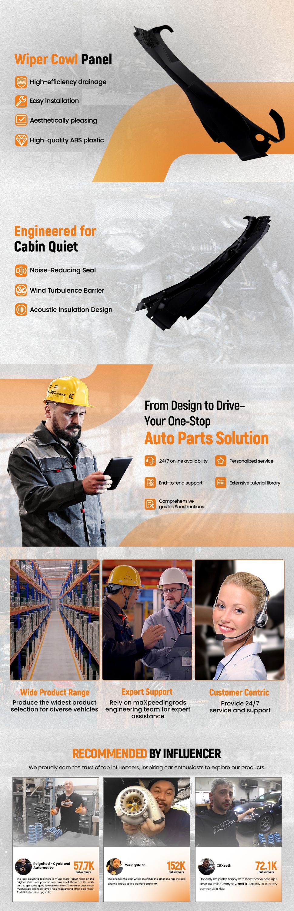 3. Easy Installation: Snap-on installation, no drilling/no glue, easy to detach for engine compartment maintenance, no damage to the car body.