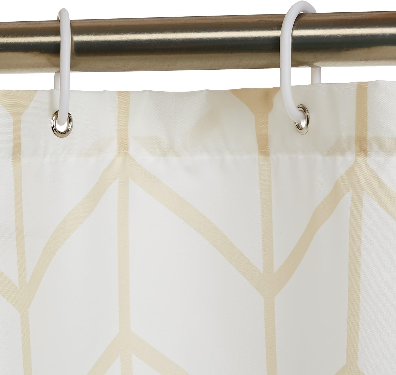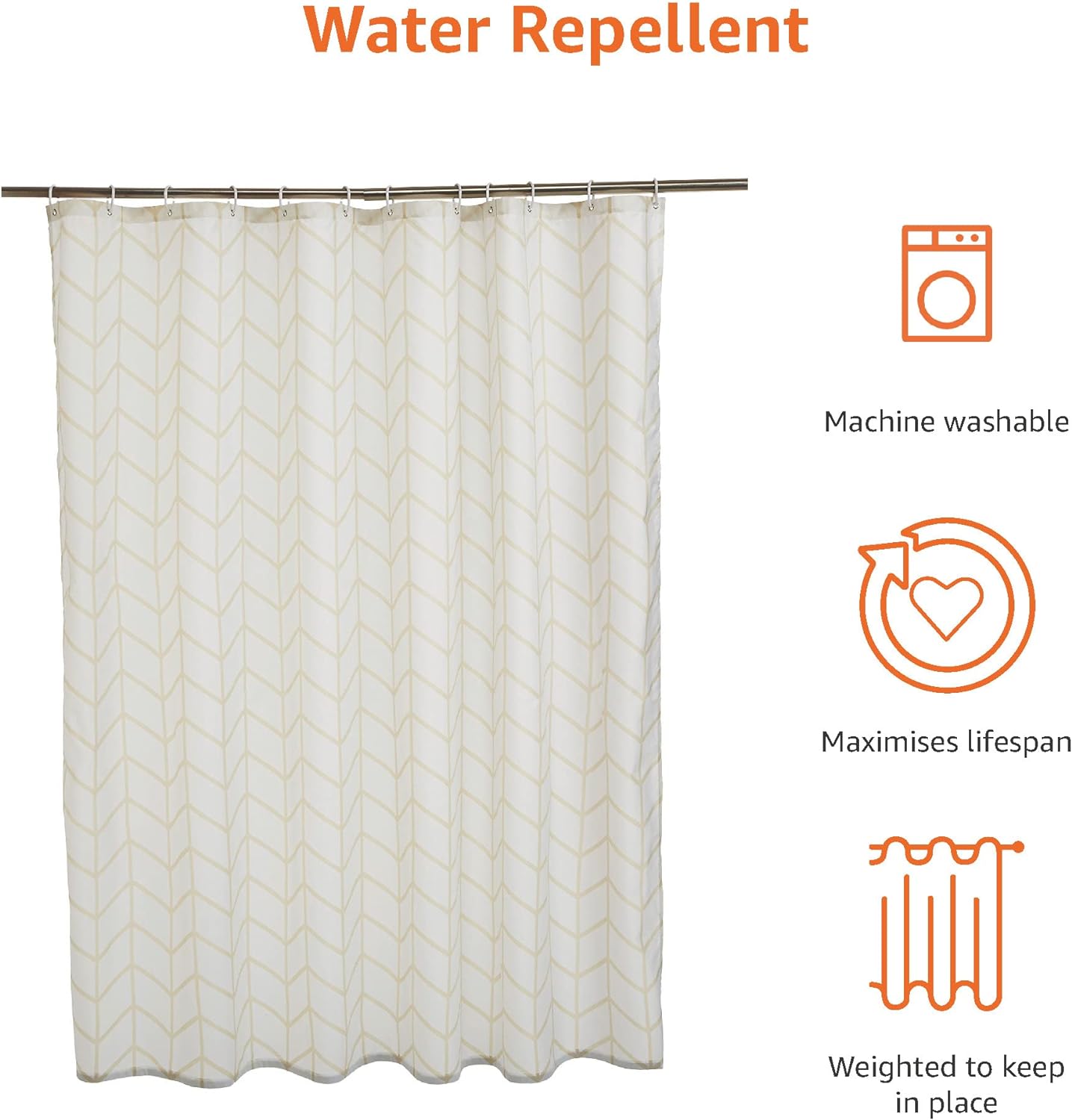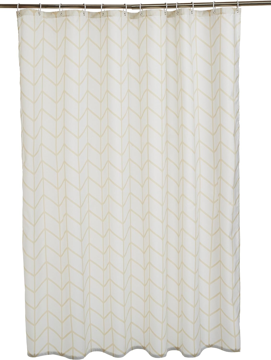 Rideau de douche en tissu imprimé AmazonBasics, motif chevrons naturel