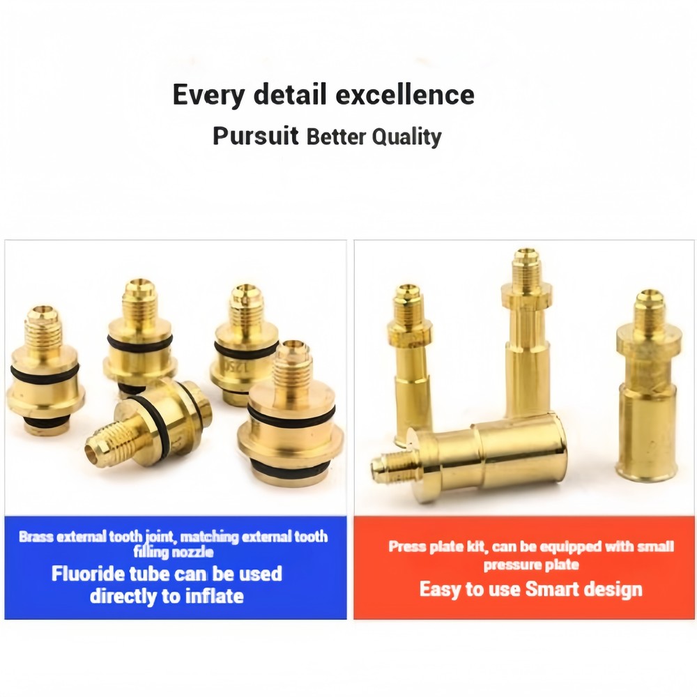 Feature: 1. A total of 103 sets of pure copper manufacturing (with valve key) (four expansion mouths are not all copper) 2. It can perform segmentation leak detection on the car air conditioning system, and can quickly and accurately find the leak point. 3. With the cleaning equipment, it can be cleaned in sections to remove impurities and excess refrigeration oil, eliminating the need to disassemble parts, saving time and effort. 4. Various joints for testing whether each part of the air conditioning system has a leak 5. Check leaks before parts are replaced to avoid repeated loading and unloading problems and enhance customer confidence. 6. Accurate judgment of compressors, cooling nets, pipelines, especially evaporators. 7.Apply for German, America, Japan, Europe series of vehicle models