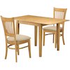 Crafted to meet the needs of intimate dining areas, the FurniFact solid wood drop leaf table set in warm oak finish blends space-conscious design with timeless charm. This 3-piece dining set is ideal for compact kitchens or breakfast nooks, offering a convenient drop-leaf feature that adapts to your daily routine—fold one or both leaves to save space or extend them for mealtime. The table’s smooth, rounded edges soften the silhouette and complement the graceful curves of the two accompanying chairs. Each piece is constructed from durable solid wood, ensuring lasting beauty and support. Designed to seat two comfortably, this set offers the versatility and elegance of larger dining sets while maintaining a small footprint. Whether used for cozy breakfasts, evening tea, or quiet moments with a book, this drop leaf dining set is an inviting presence in your home. With a combination of traditional craftsmanship and practical form, it suits both classic and contemporary spaces. Its compact size makes it ideal for apartments, studio lofts, or smaller dining areas. Add a functional and stylish centerpiece to your kitchen or dining room with this versatile and well-crafted set. Photo may be slightly different from the actual item in terms of color due to the monitor's display. The product will be delivered in its original manufacturer packaging.