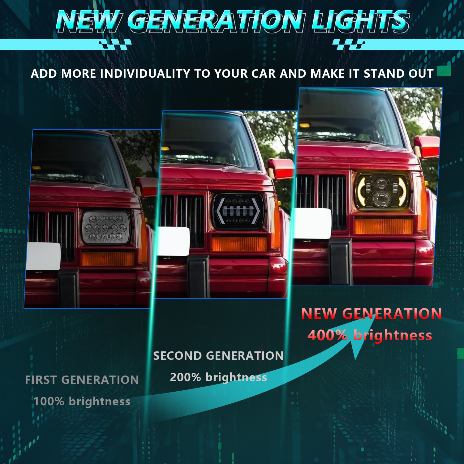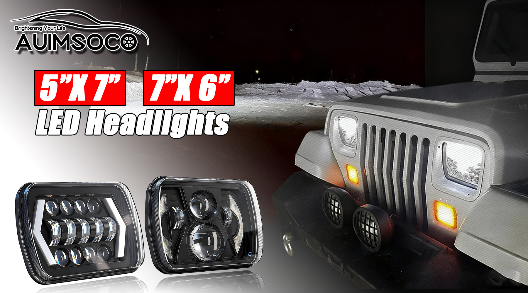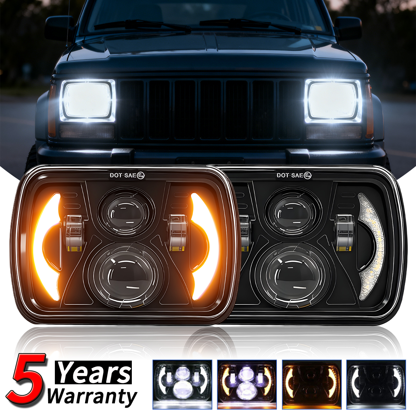 These are also direct fit, plug and play full LED headlight upgrade for Jeep Wrangler YJ 1986-1995 and for Jeep Cherokee XJ 1984-2001 ,and any other car with about 5 x7 / 7 x6 inch headlight.