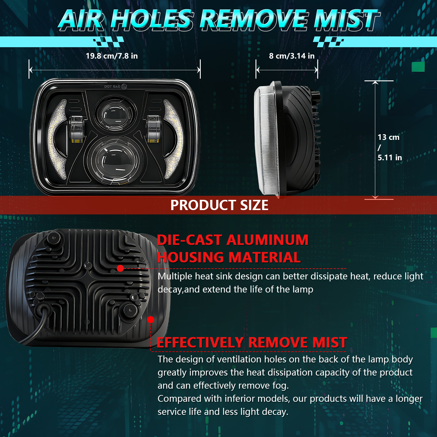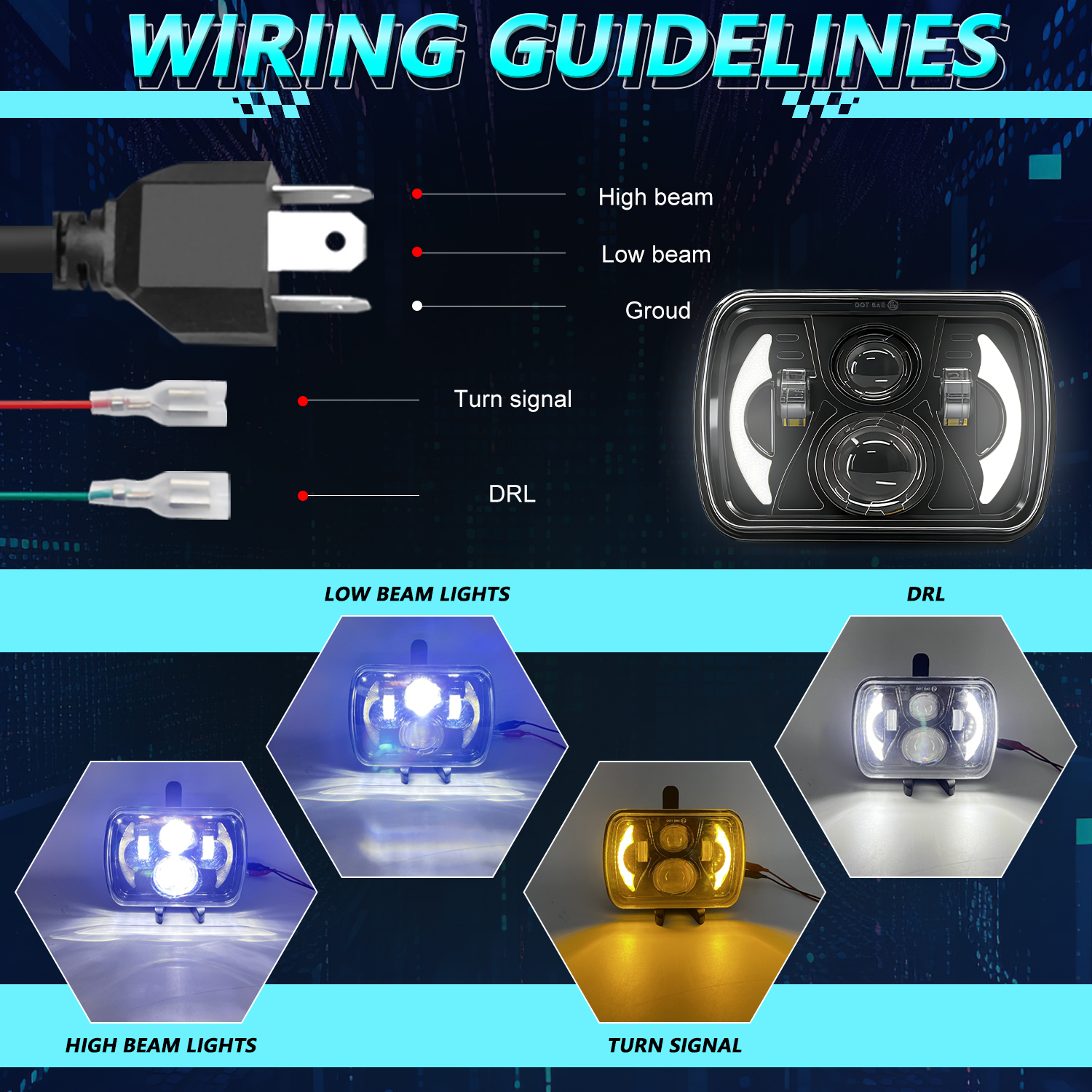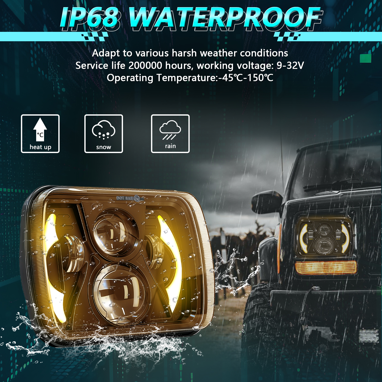These are also direct fit, plug and play full LED headlight upgrade for Jeep Wrangler YJ 1986-1995 and for Jeep Cherokee XJ 1984-2001 ,and any other car with about 5 x7 / 7 x6 inch headlight.