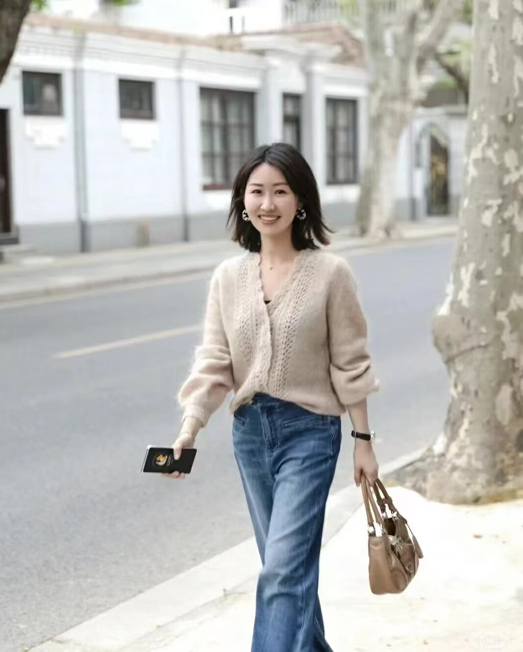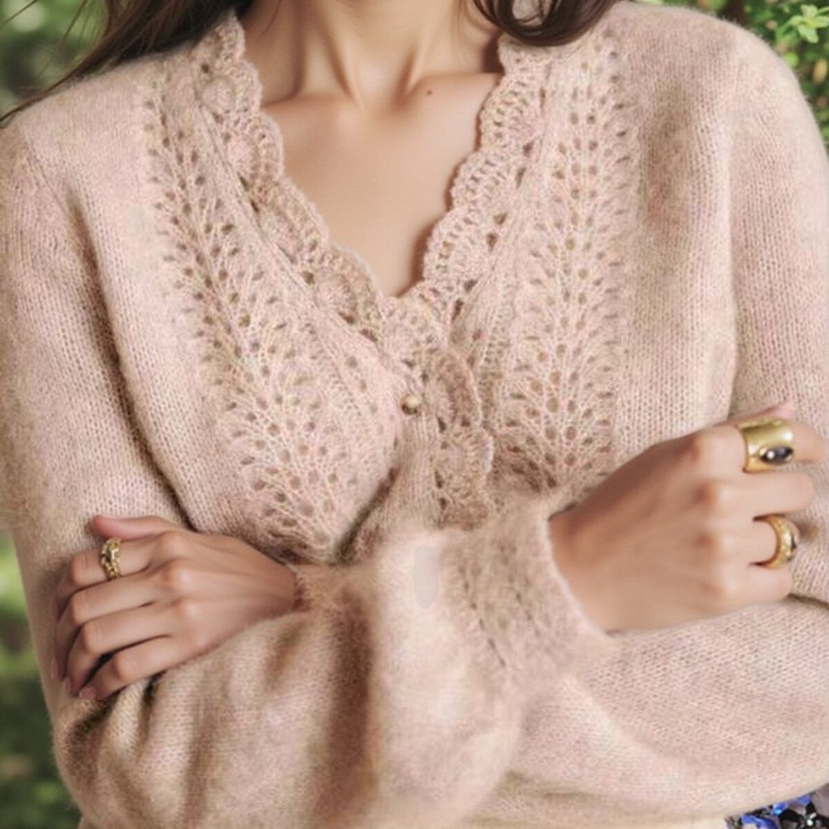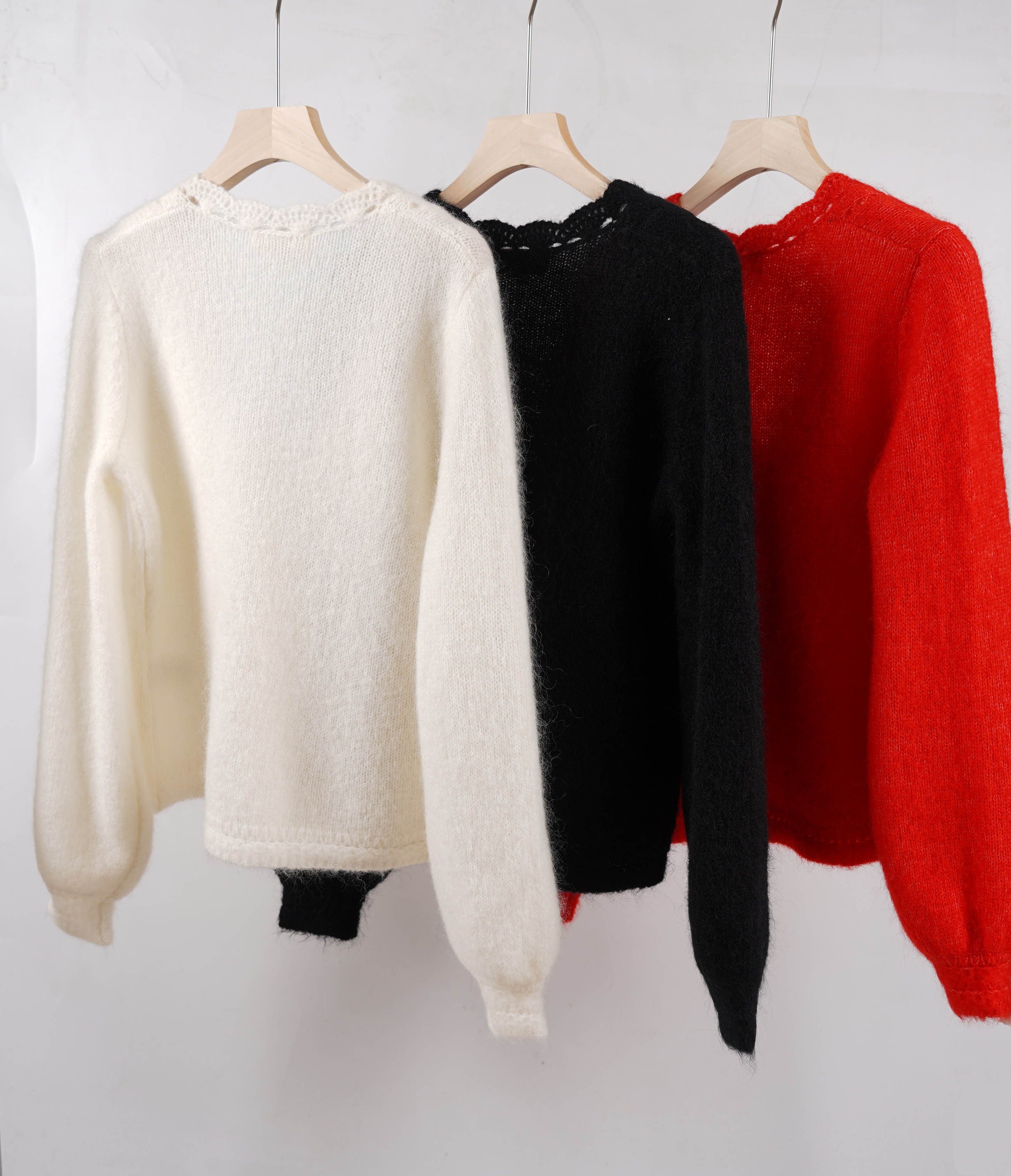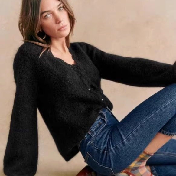 Sezane Women's V-neck Lantern Sleeve Wool Blend Cardigan Sweater Coat