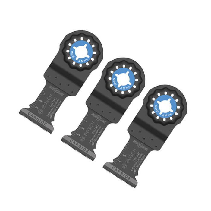 Includes (1) Oscilating Blades. New, Bulk Packed. Genuine Bosch Oscilating Blades # OSL114C-3. Carbide teeth for high performance in metal and other materials. Color coded interface and laser etched blade to quickly identify the right blade. Starlock interface for professional performance, also works with OIS compatible tools including Bosch, Fein, Milwaukee, Makita, Rigid, others. Compatible with the Following: Starlock Multi-Tools