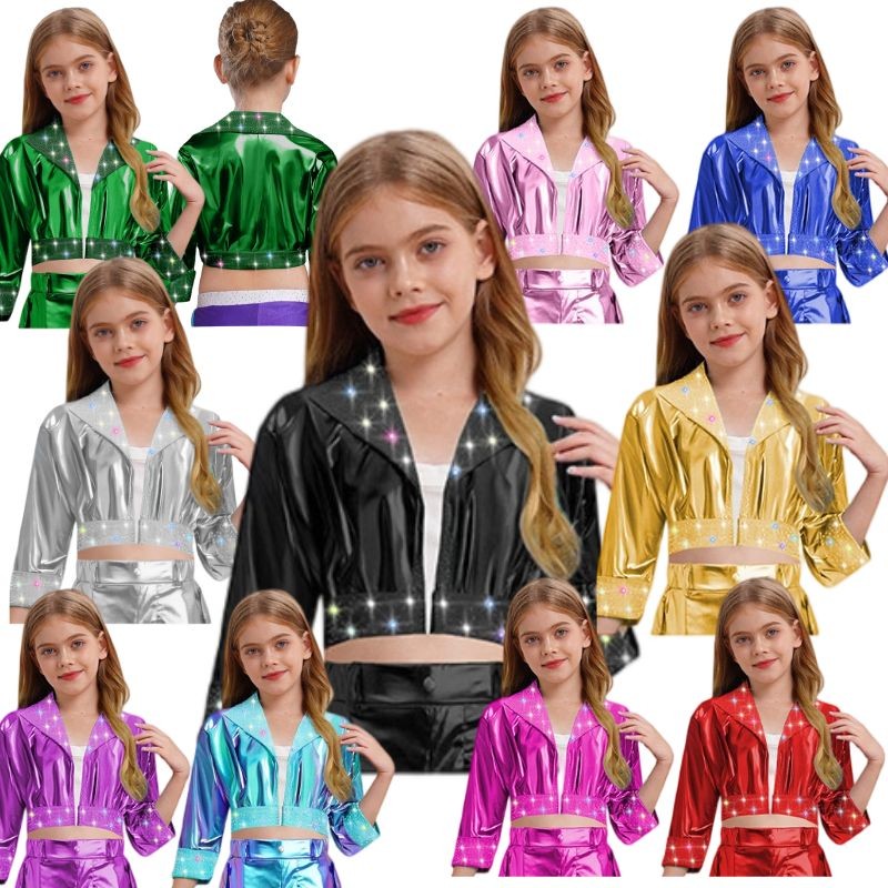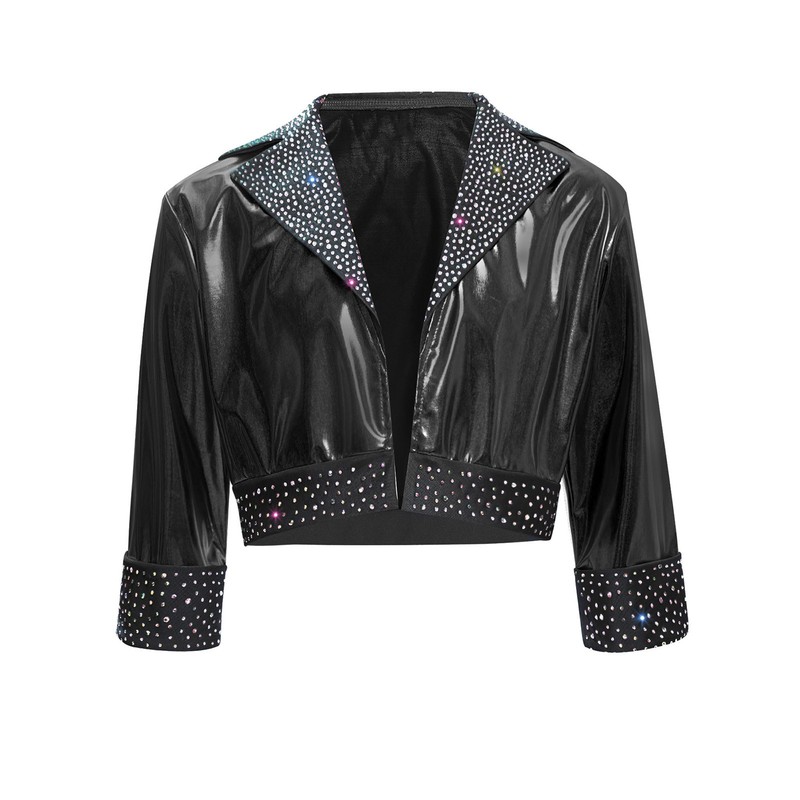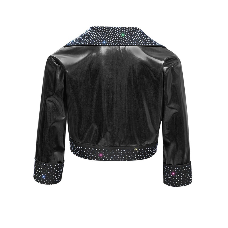 Kids Girls Coat Disco Jacket Hip Hop Outerwear Shiny Rhinestones Holiday Jazz