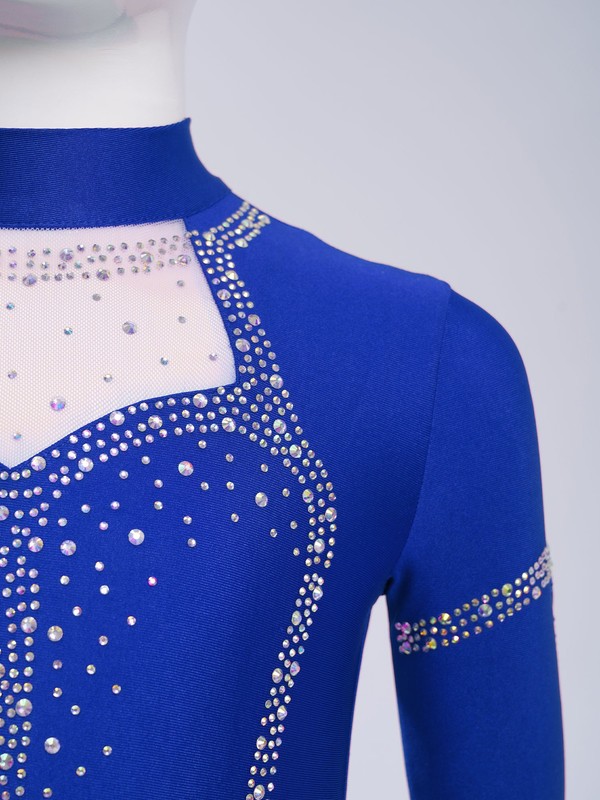 Mock neck long sleeve leotard with keyhole back and press buttons closure at the crotch allow for easy wearing.