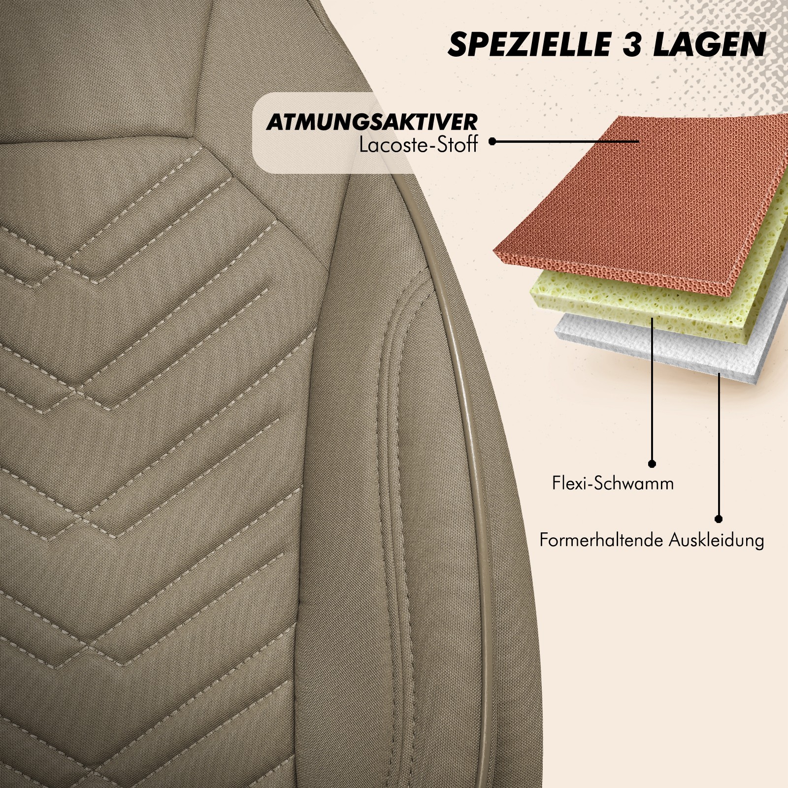Die Autositze werden komplett bezogen. Dank Zugbänder an strategisch wichtigen Punkten haben Sie eine hohe Rutschfestigkeit.