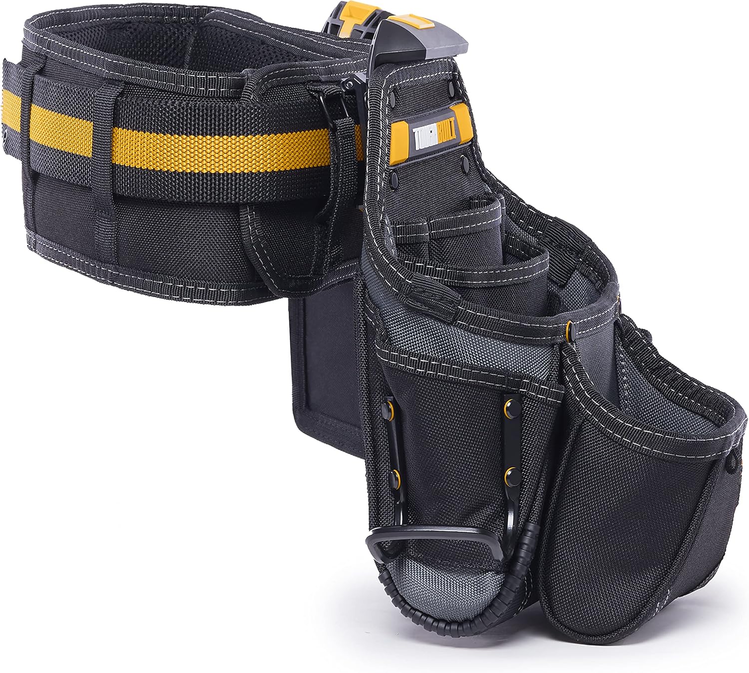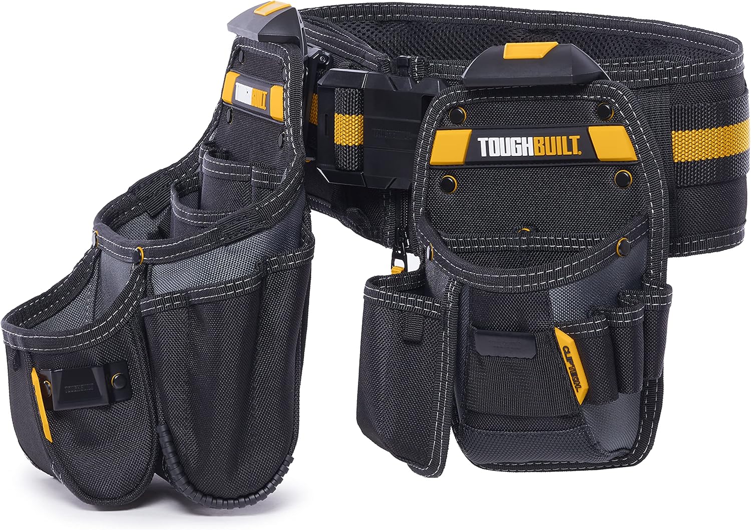The ToughBuilt TB-CT-111-CP ClipTech Handyman Tool Belt Set delivers a professional-grade carrying system designed for improved workflow and all-day organization. Featuring the signature ClipTech modular design, these rugged pouches easily attach, detach, and reposition on the belt, allowing users to adapt quickly to different tasks. The heavy-duty padded belt fits securely and comfortably, while the reinforced 1680D construction withstands demanding jobsite conditions. With multiple pockets and loops, both pouches keep essential tools, hardware, and accessories neatly arranged and within reach. Whether you're a contractor, electrician, carpenter, or DIY enthusiast, this set provides exceptional strength, convenience, and versatility for everyday use.