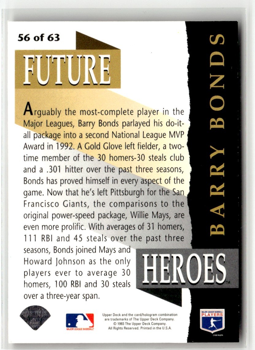 1993 Upper Deck Future Heroes Barry Bonds #56