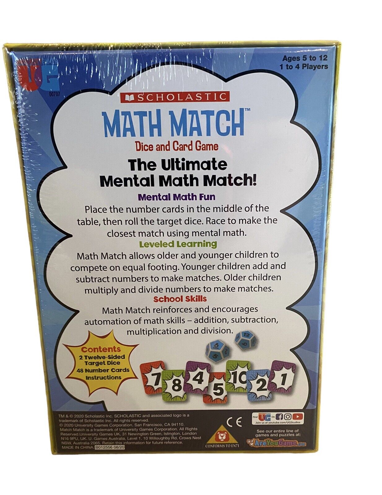 Scholastic Math Match Dice and Card Game | +Bonus Brainiac Game | Brand New