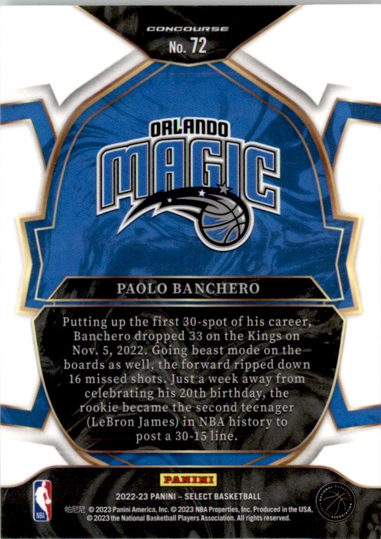 | Paolo Banchero 2022-23 Panini Select Concourse RC #72 Orlando Magic |