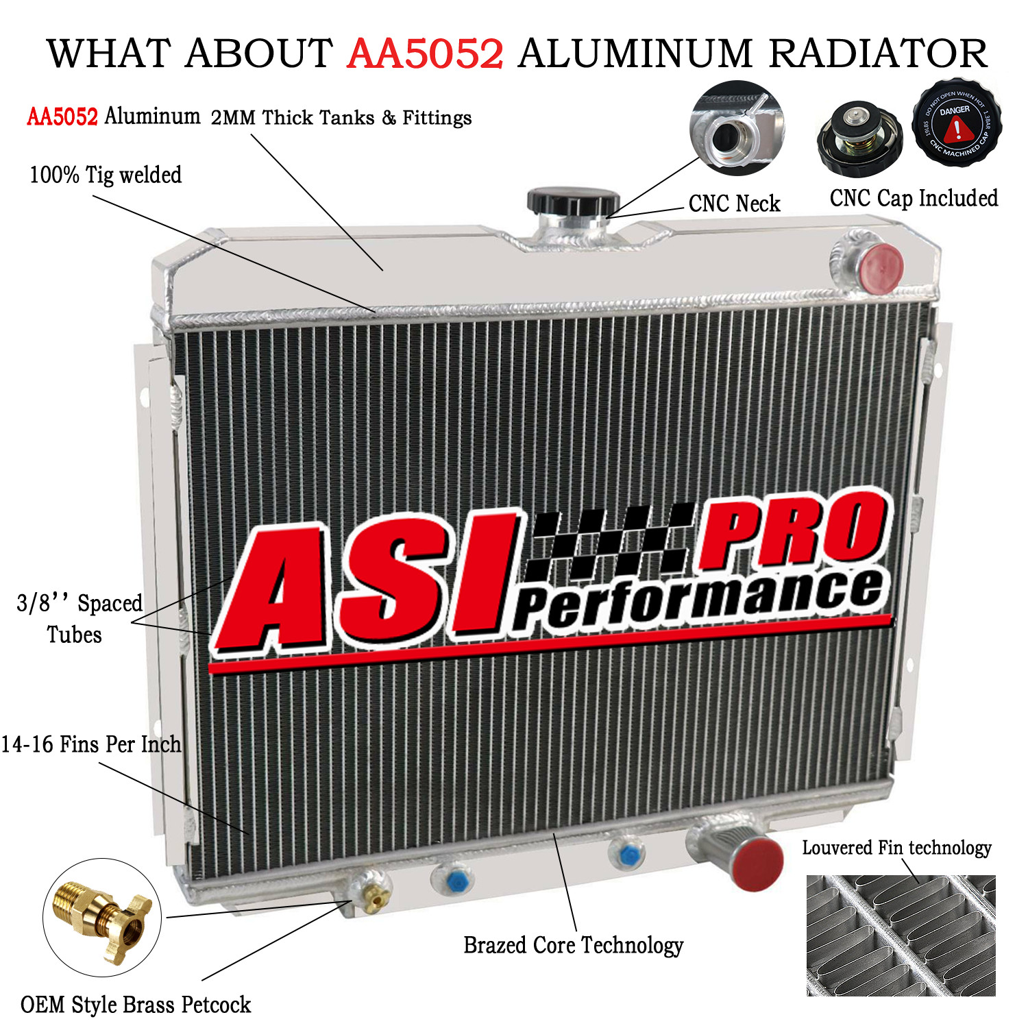 This AA5052 Aluminum Radiator is designed to provide maximum cooling efficiency to prevent premature engine failure. Its light-weight, and high-heat transferring aluminum features a tube and fin design that, dramatically increases surface area that enables the heat to dissipate more efficiently. This AA5052 Aluminum Radiator is at least 30%-45% more efficient than stock ones. Most importantly, it has a much higher capacity for coolant than stock ones, which means that your cooling system will be more efficient and will be more resistant to temperature surges in racing applications.