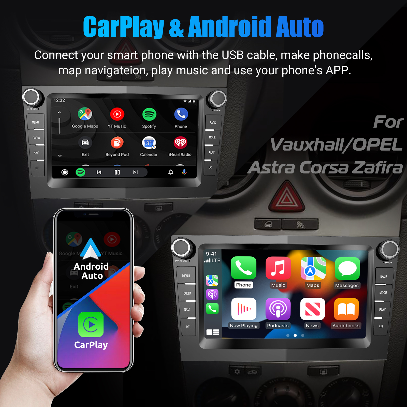 7 Inch Android 14 Car Radio For Vauxhall Astra Corsa Zafira Meriva Vectra: The Android car radio with 7" 1024*600 HD capacitive touch screen, 1GB RAM and 32GB ROM allows you to download your favorite apps and videos, so that driving will never be boring .No additional frame, no cable change, plug and play.