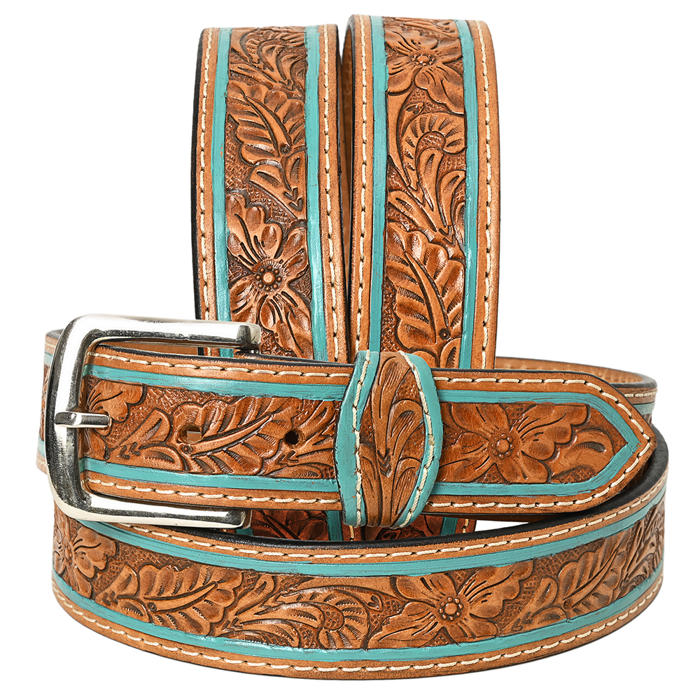 HILASON Western Genuine Leather Belt for Men Women Cowboy Cowgirl Handmade Unisex Full Grain Heavy Duty Floral Tooled Belt