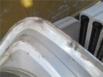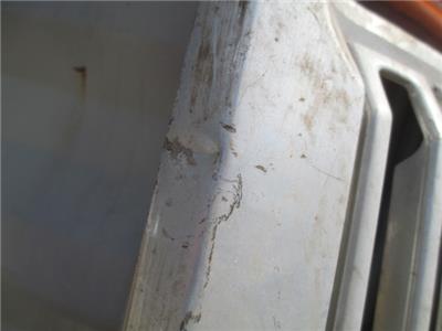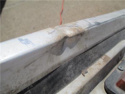 The one marker light is broken. The other one is in good condition yet. There are some small noticeable dents in that can be repaired. It looks straight ,no twists. The one side needs work on the edge but is repairable.