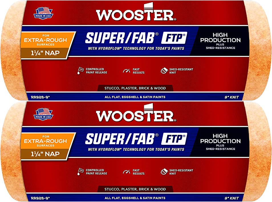 Includes (2) RR926 9 inch Roller cover. 9" long roller cover with 1¼" Nap. Shed-resistant and high-capacity for today’s paints: flat, eggshell, satin. HydroFlow technology provides controlled release to improve paint flow. Exclusive lager-colored fabric for fastest coverage, non-matting for longer life.