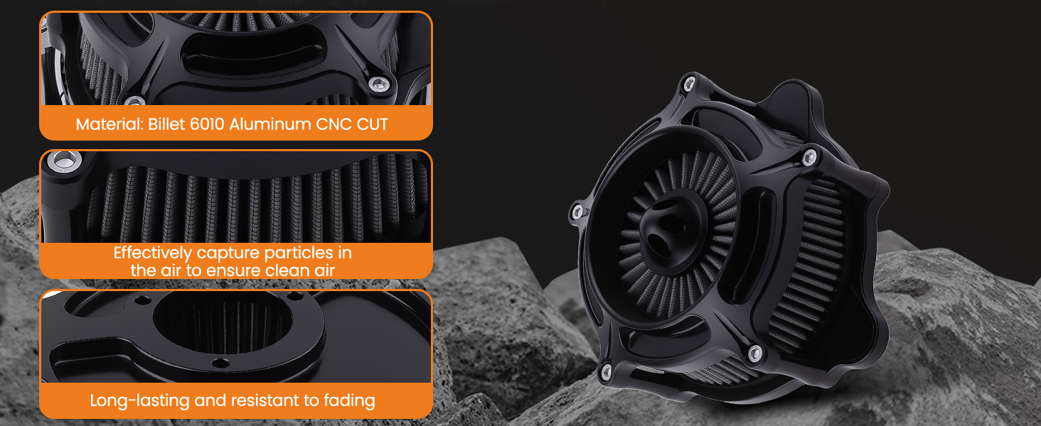 -The forged air cleaner housing has built-in velocity stacking that both improves performance and enhances appearance. Forged bi-metal back panel with rounded entry and hidden breather hardware. A replacement inverted air filter is also provided.