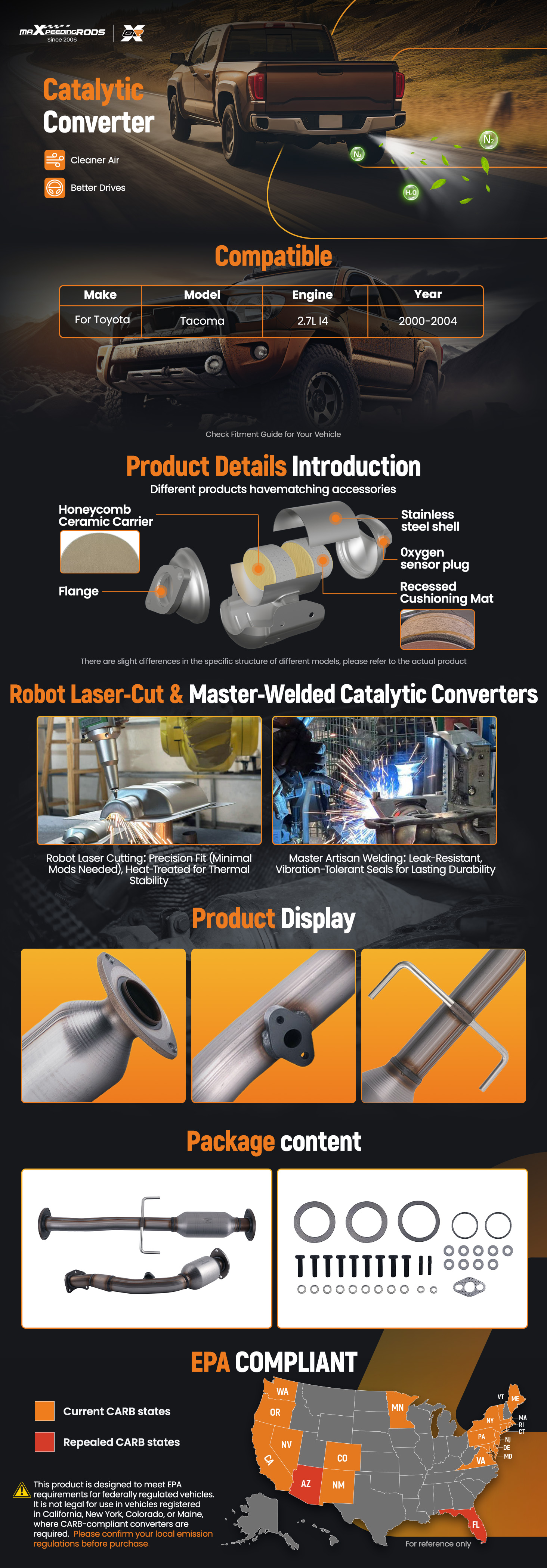 400CPSI Catalytic Converter Kit for Toyota Tacoma 2.7L 2000 2001 2002 2003 2004