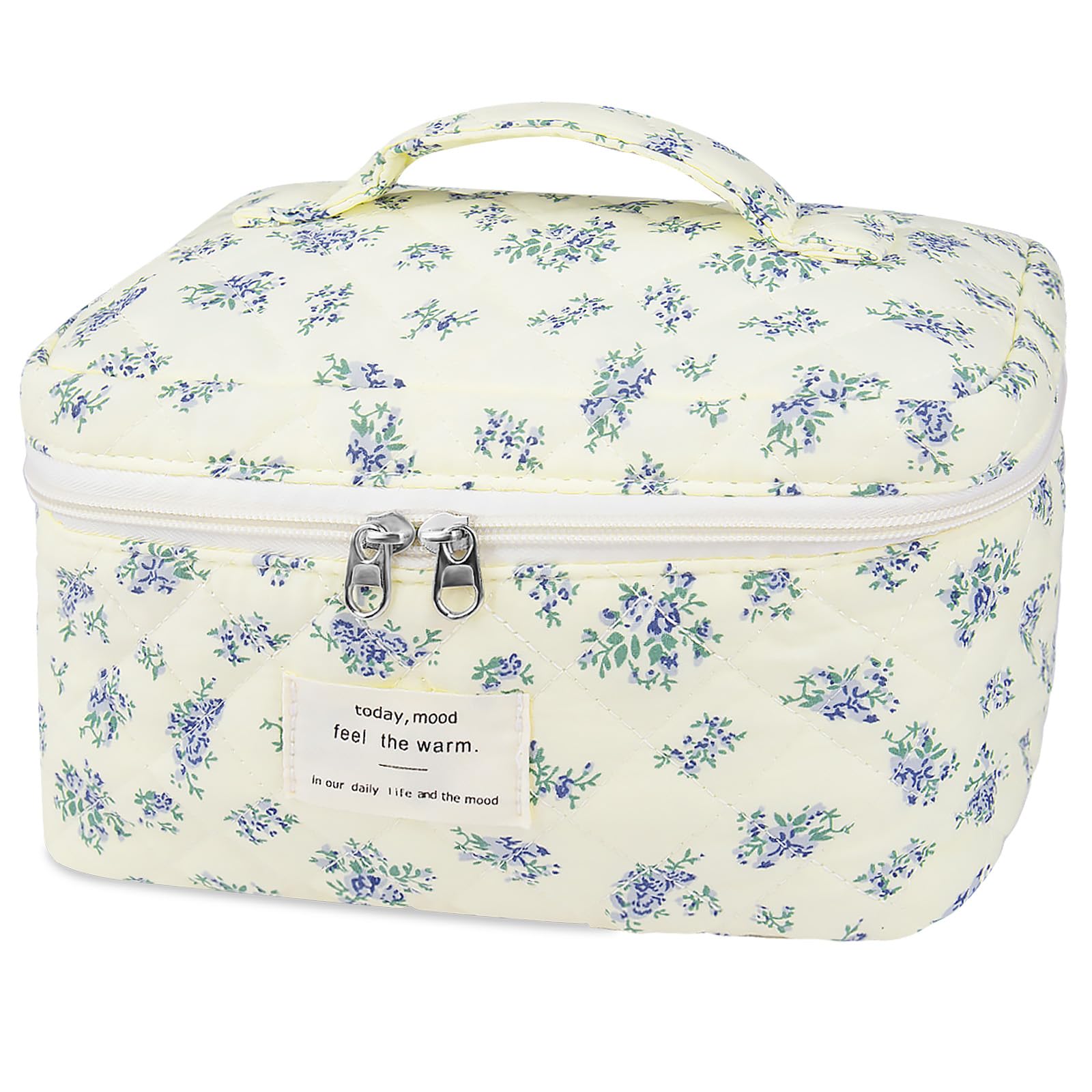Large Travel Quilted Makeup Bag for Women,Big Floral Cotton Cosmetic LSHW