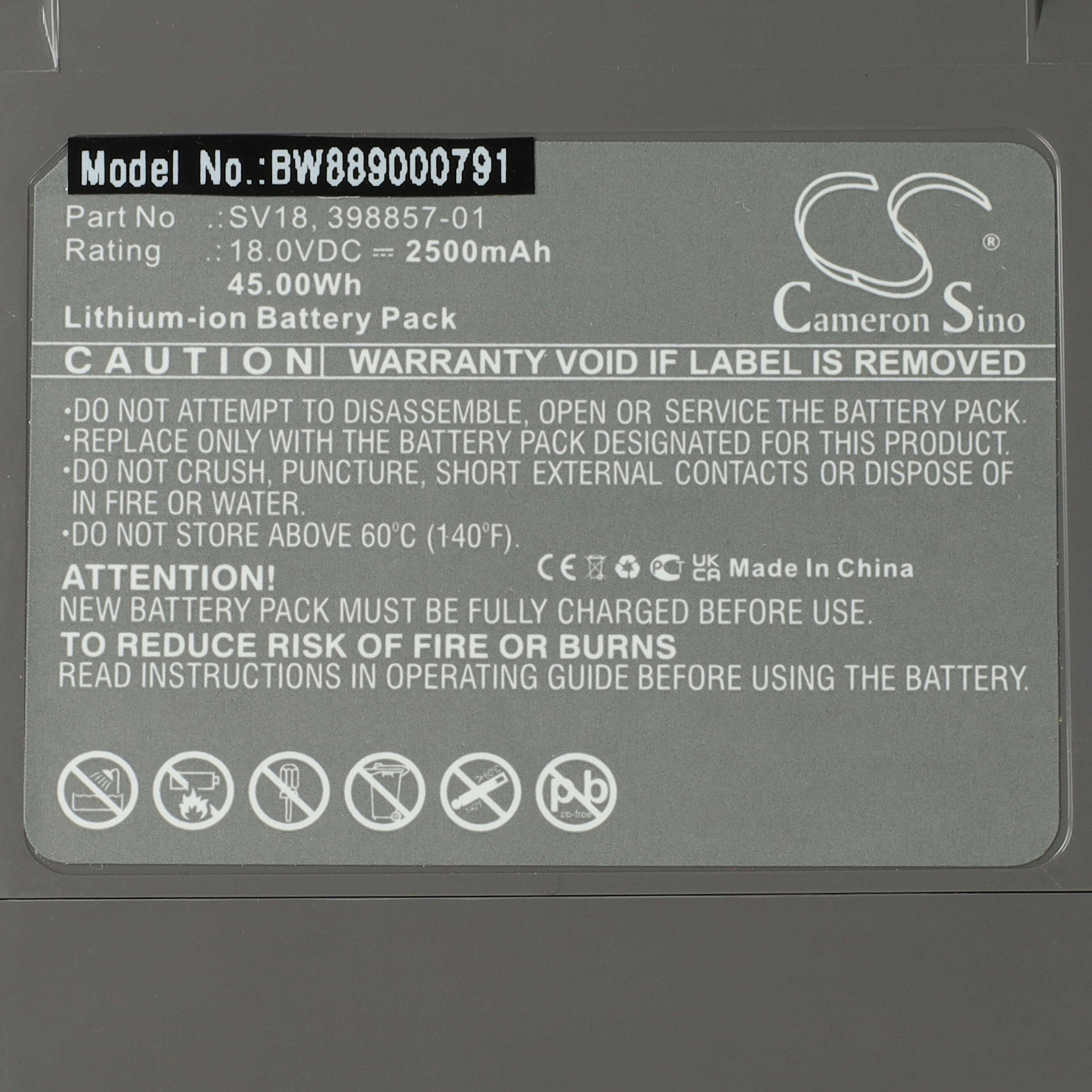 vhbw leistungsfähiger Ersatz-Akku für Dyson V12 Detect Slim Absolute, Detect Slim Extra Staubsauger (Li-Ion, 2500mAh, 18V)