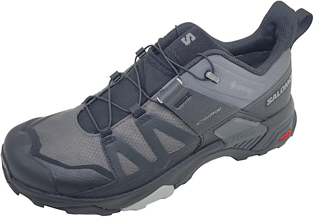 Conquer trails with confidence in the Salomon Men's X Ultra 4 Gore-Tex Hiking Shoes in Magnet/Black/Monument, Size 7.5. Designed for rugged outdoor adventures, these hiking shoes feature a lightweight yet durable mesh upper with waterproof Gore-Tex protection to keep your feet dry in wet conditions. The lace-up closure ensures a secure, customizable fit while the rubber sole delivers excellent traction and stability across diverse terrains. With a 1-inch heel, these shoes provide balanced support for long hikes, ensuring comfort and performance throughout the day. Perfect for hiking, trekking, or casual outdoor activities, the Salomon X Ultra 4 combines innovative technology, all-weather protection, and reliable durability for any adventure.