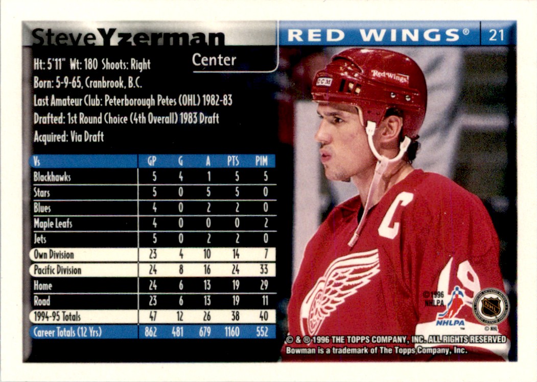 | Steve Yzerman 1995-96 Bowman Foil #21 Detroit Red Wings |